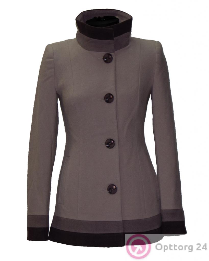 Полупальто женское сиреневое с коричневыми полосками оптом