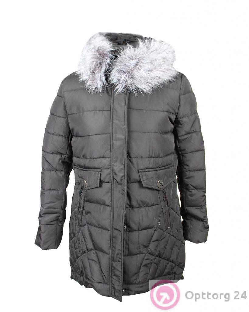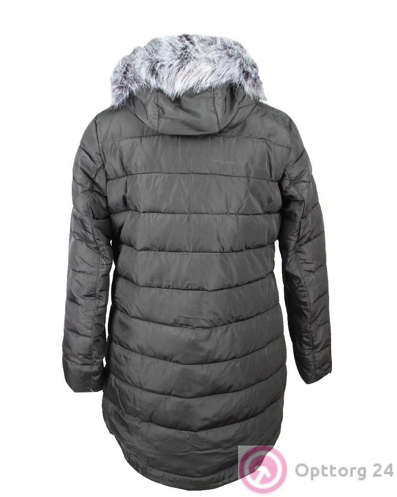 Женский пуховик классического черного цвета. Модель имеет прямой крой и прострочку по всей длине. Капюшон с мехом.