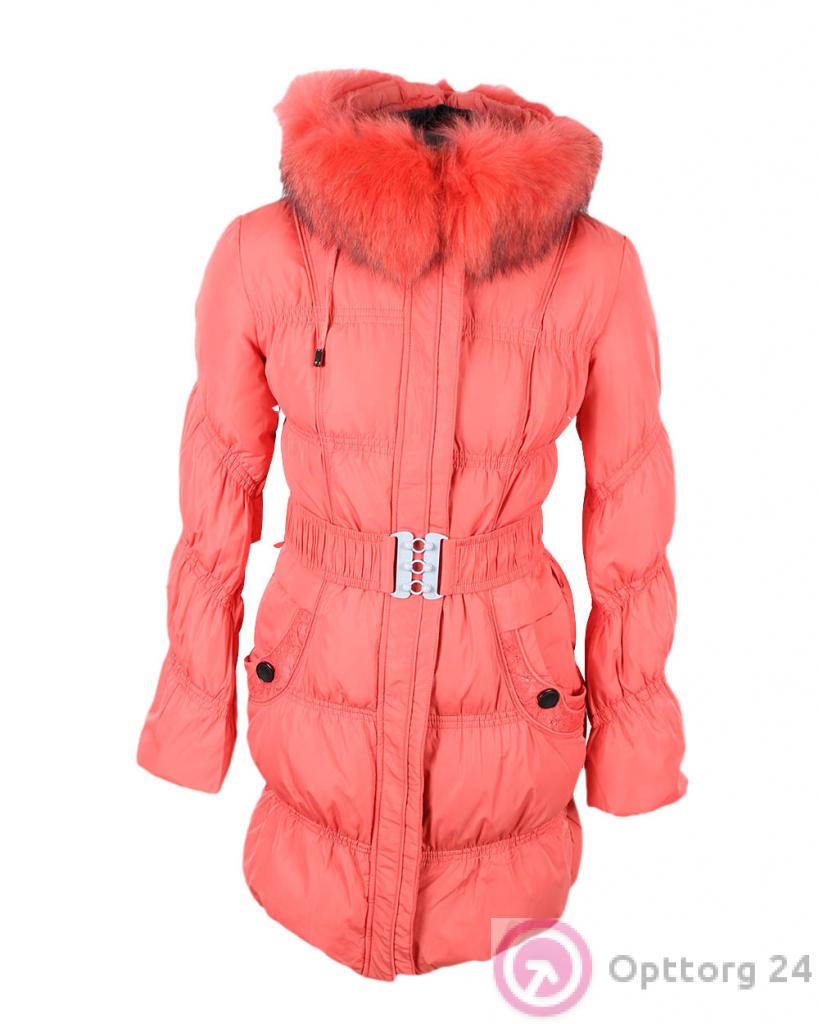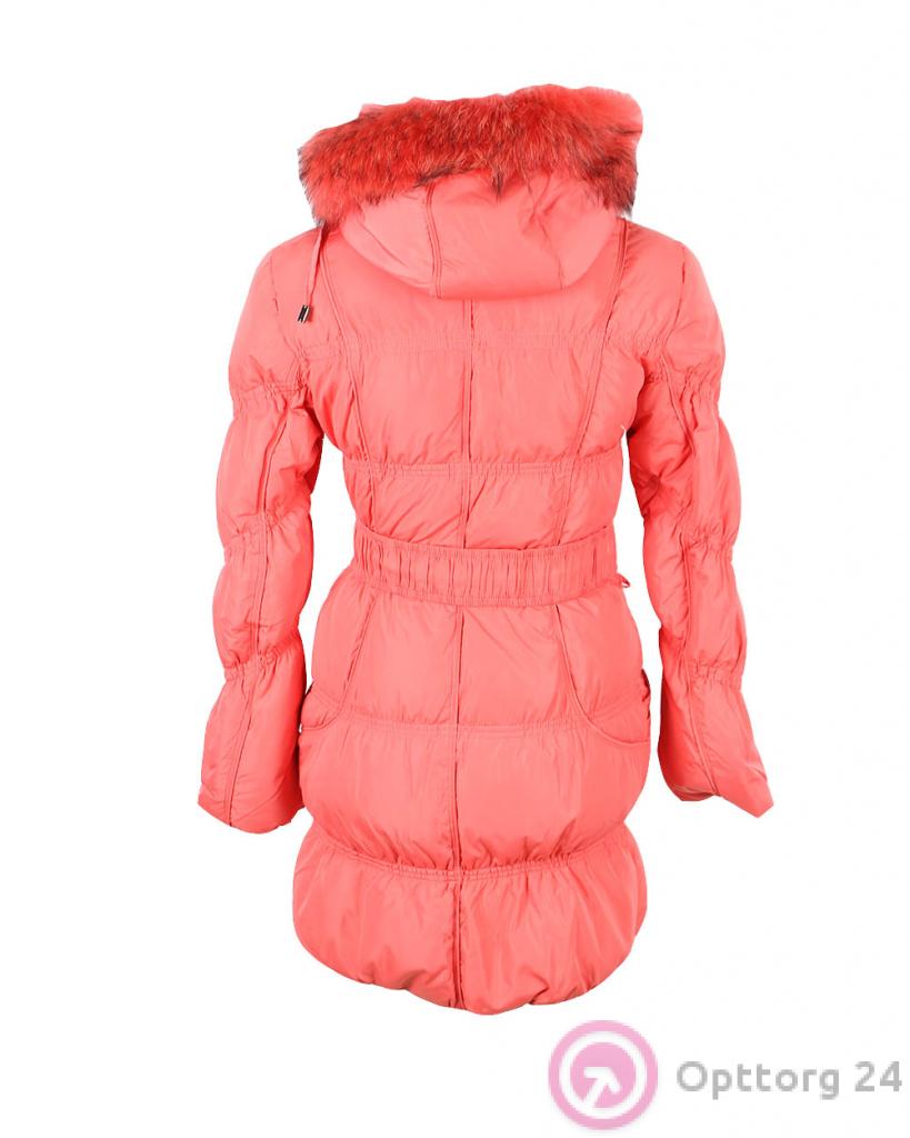 Пуховик с натуральным мехом песца бирюзовый оптом