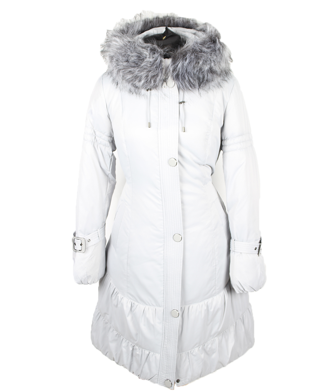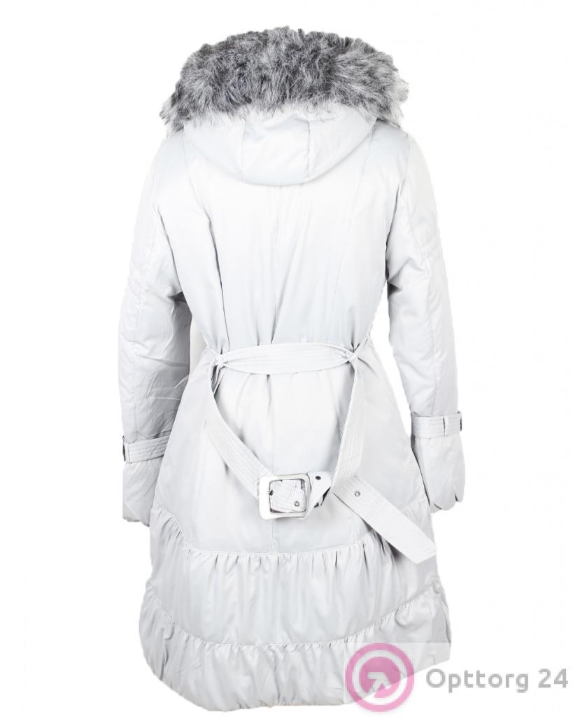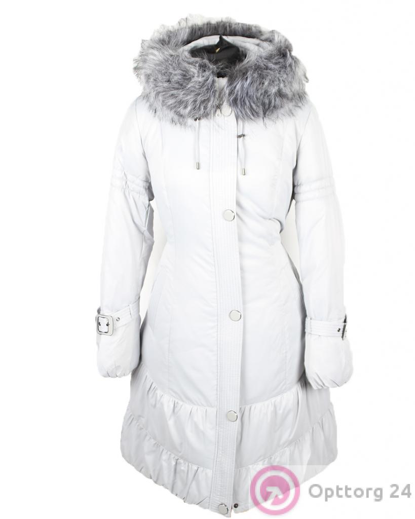 Пуховик женский белого цвета с кнопками и мехом оптом