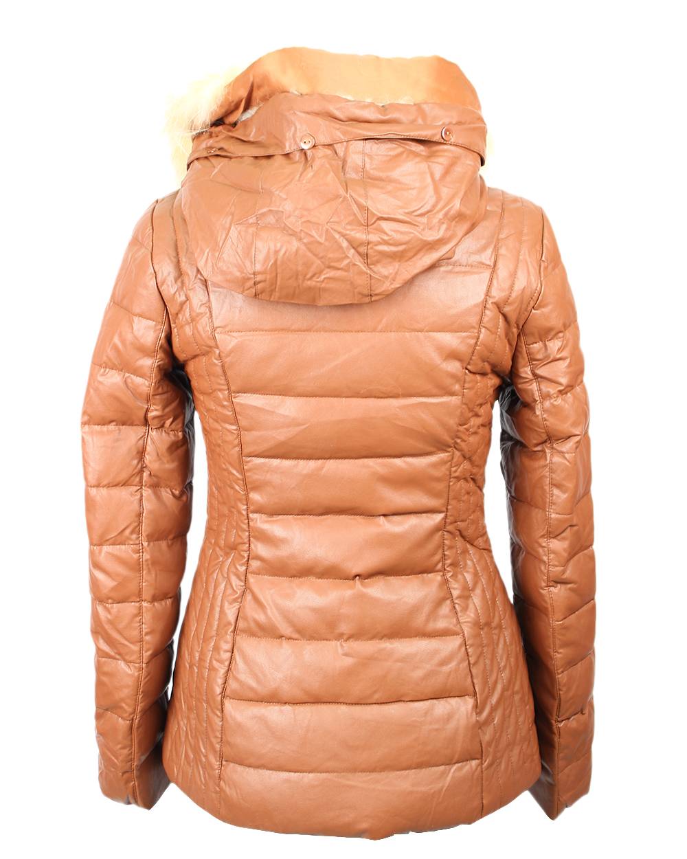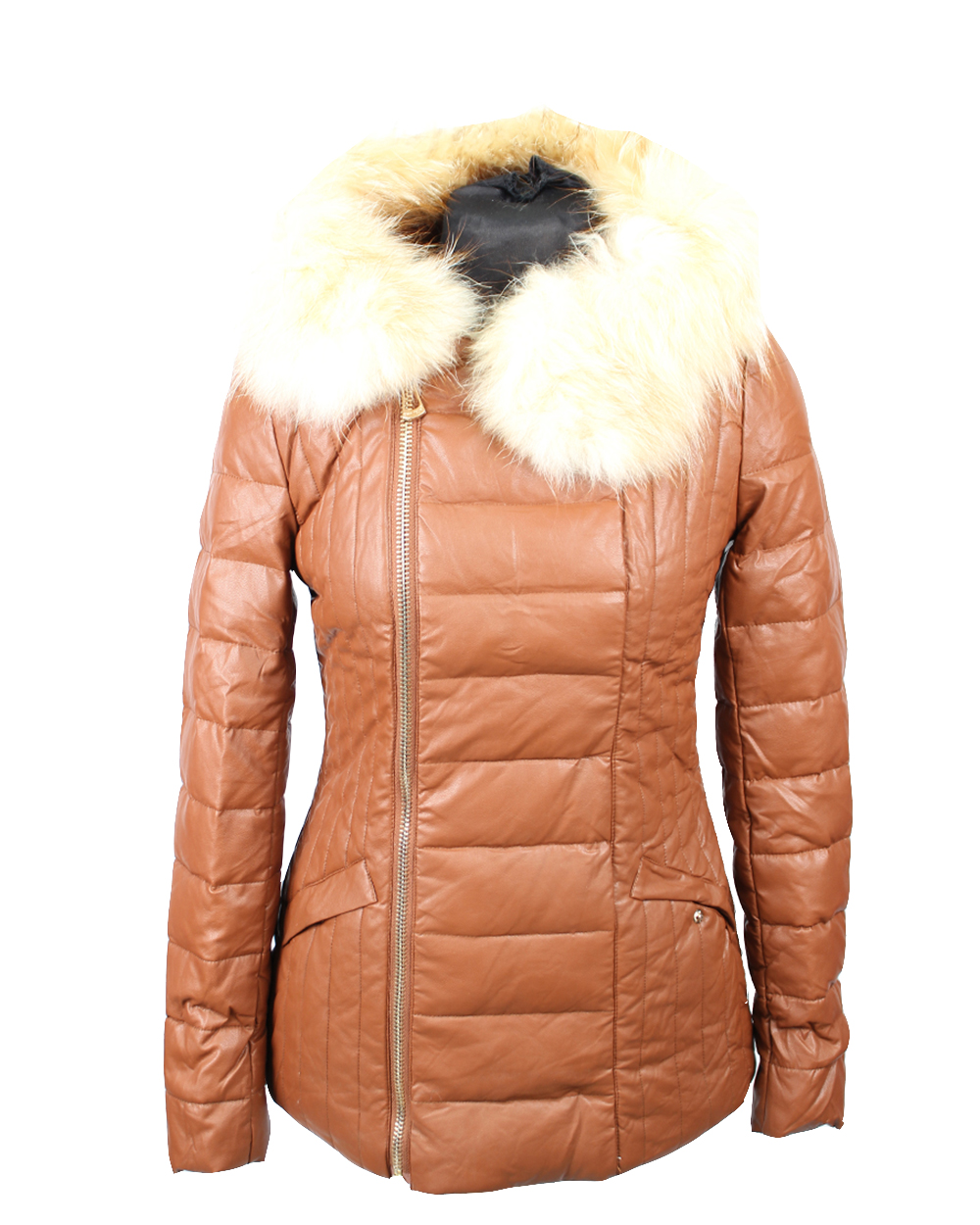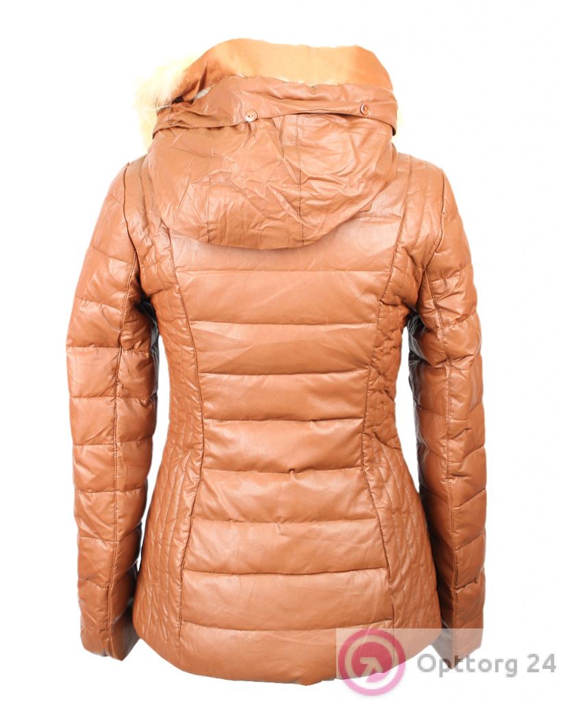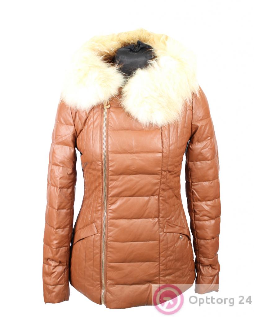 Пуховик женский бежевый с натуральным мехом песца оптом
