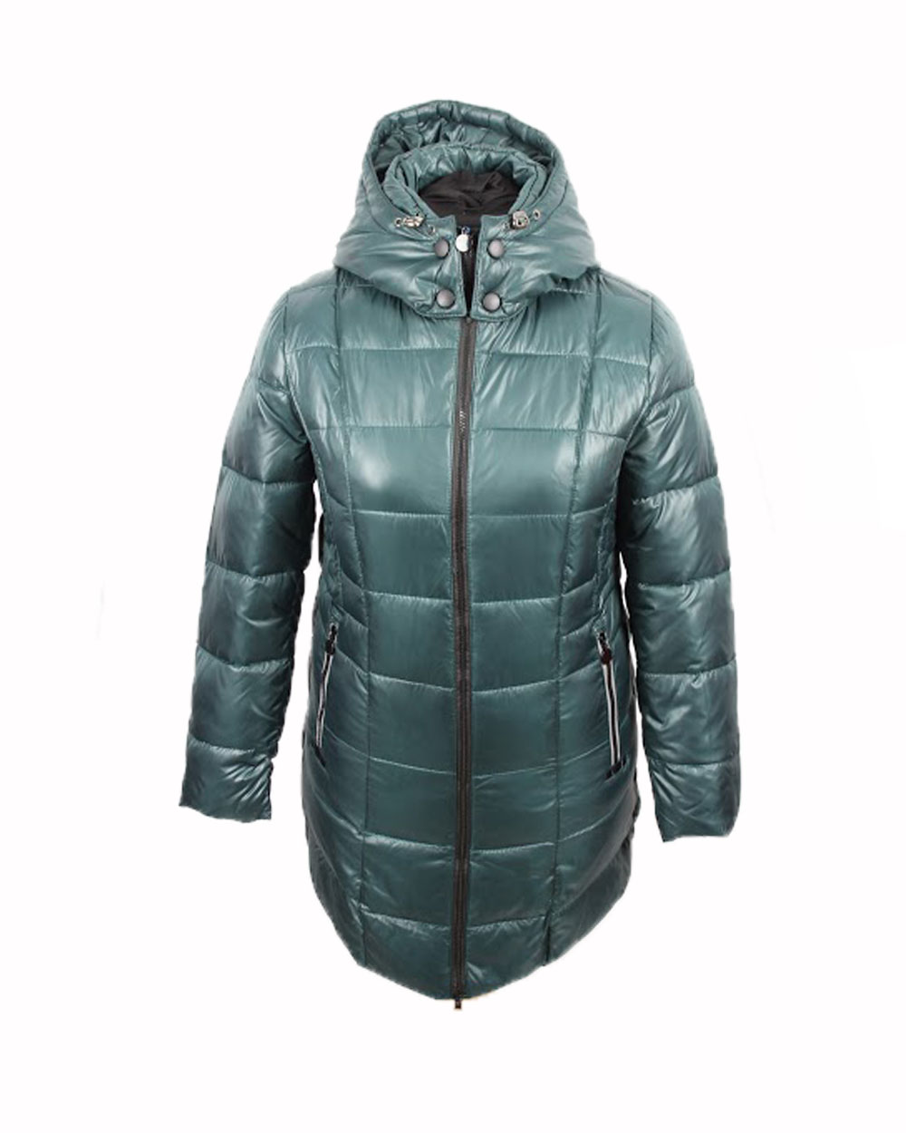 Симпатичный полуприталенный пуховик с зауженым книзу кроем. Застегивается на молнию. Воротник-стойка, капюшон отстегивается.