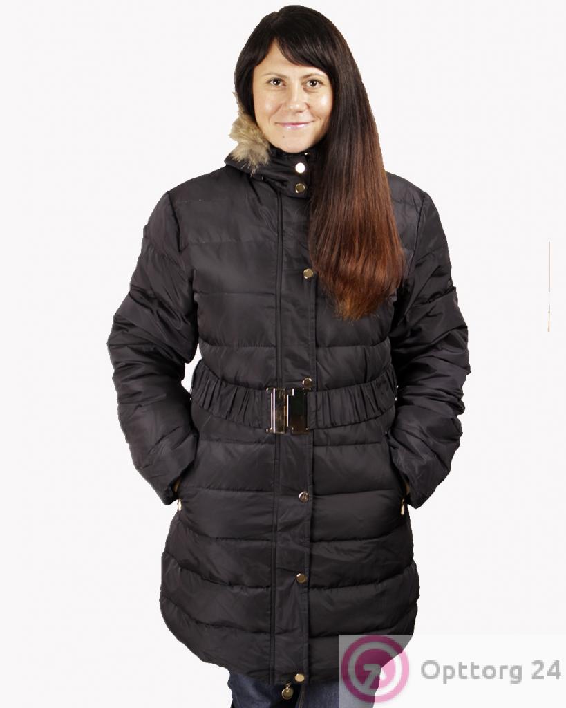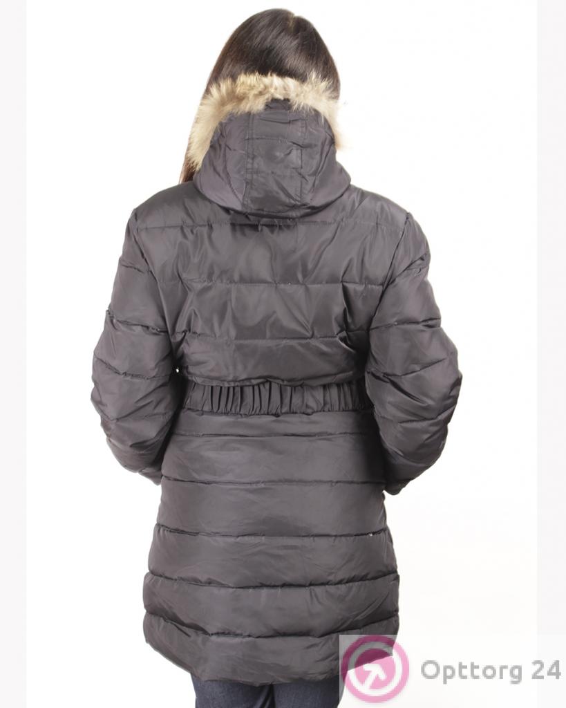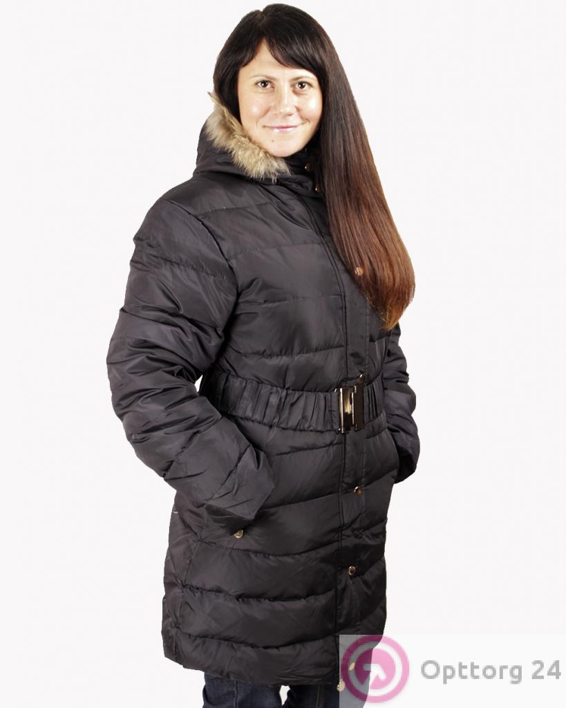 Пуховик женский черного цвета (48-58) и натуральным мехом на капюшоне оптом