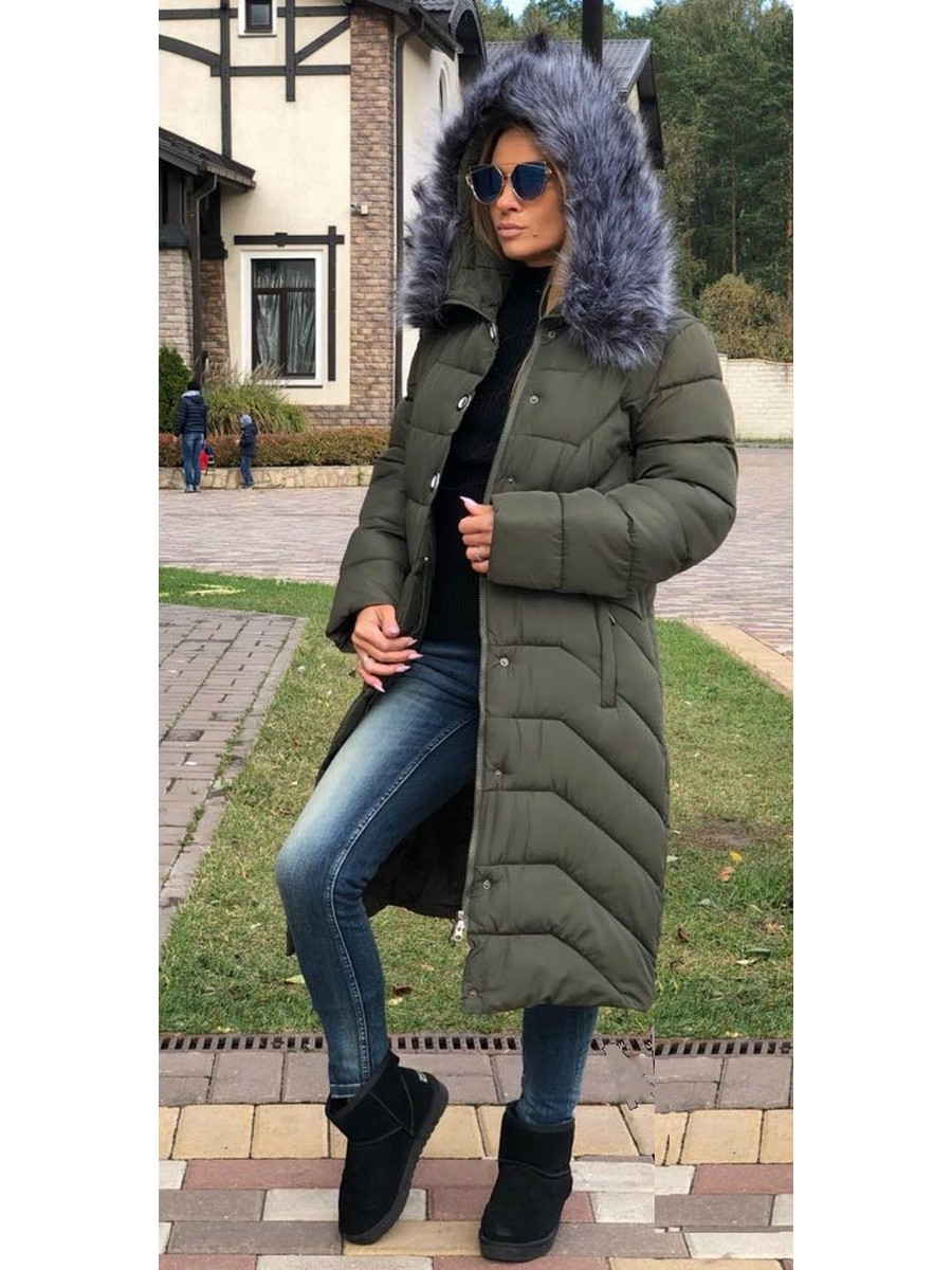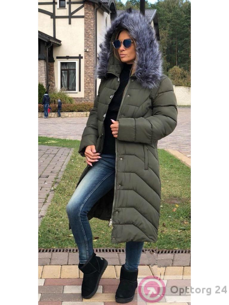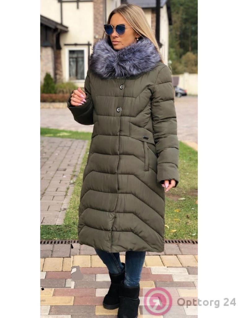 Пуховик женский цвета хаки оптом