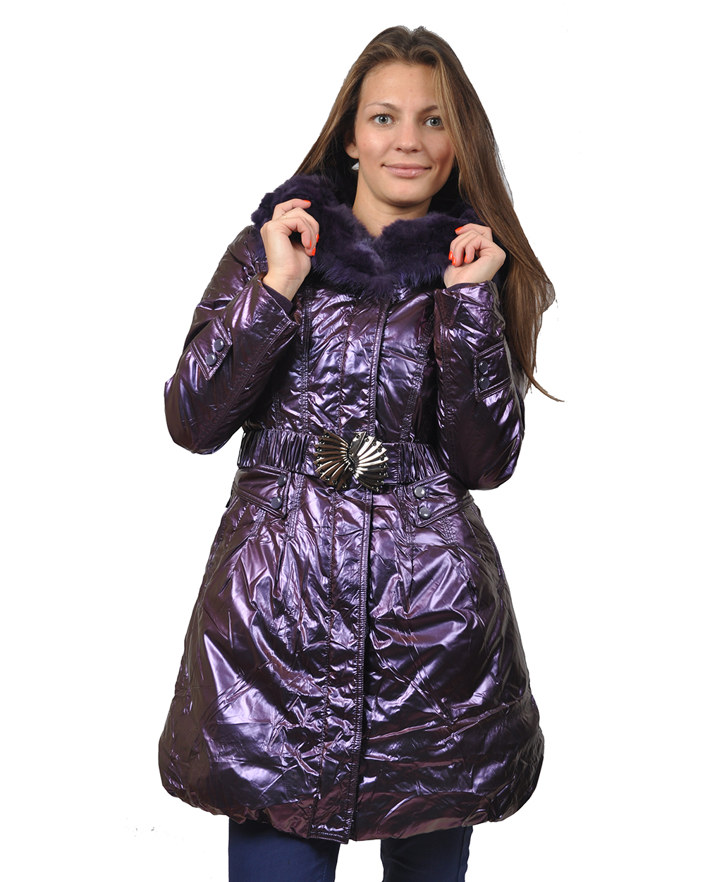 Пуховик женский фиолетовый переливающийся оптом