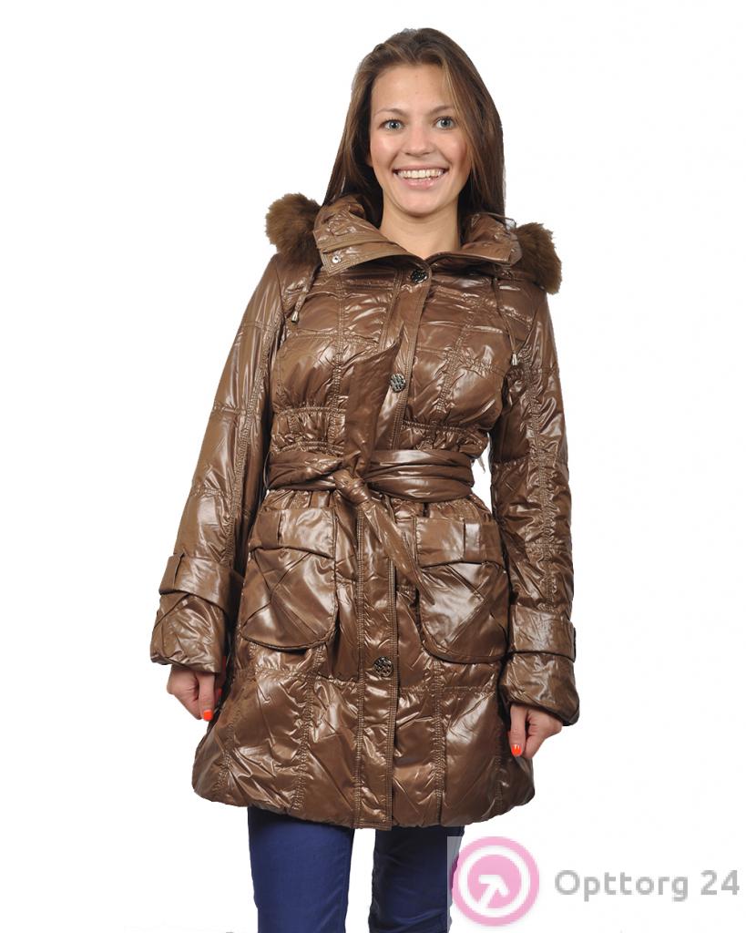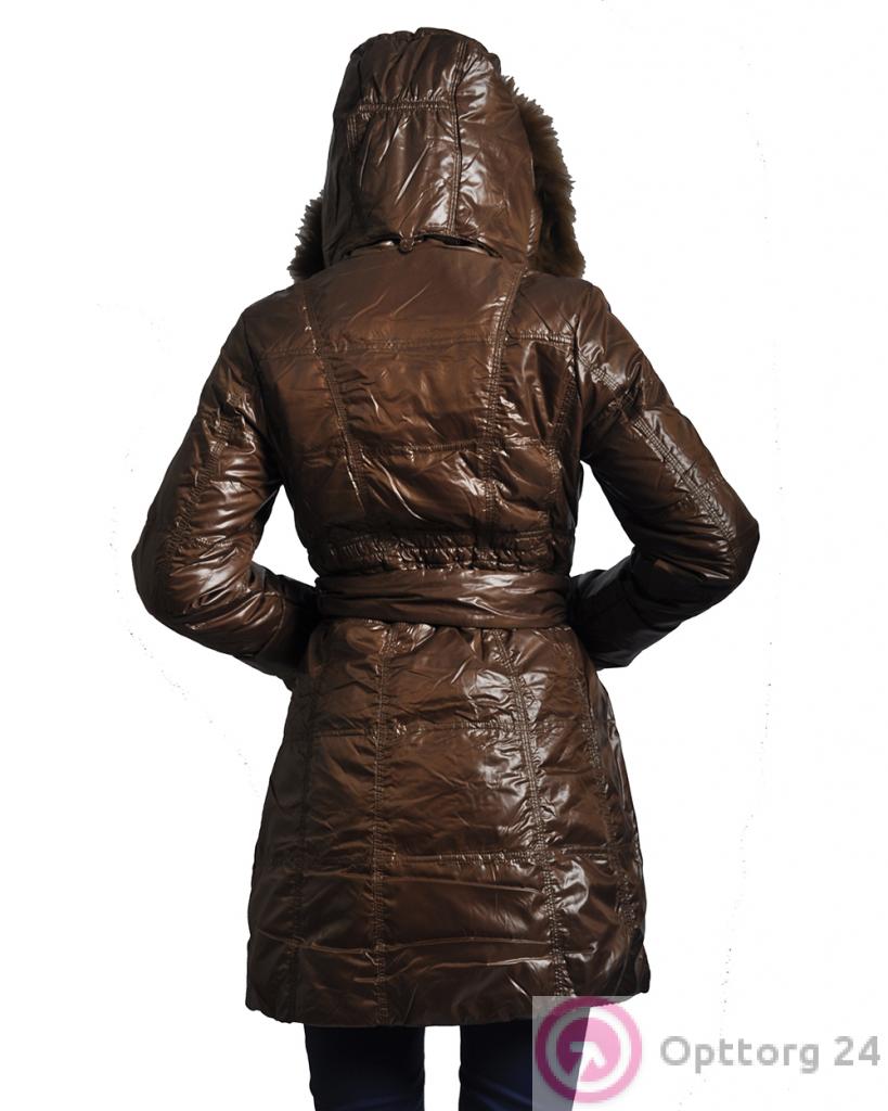 Пуховик женский коричневый с капюшоном оптом