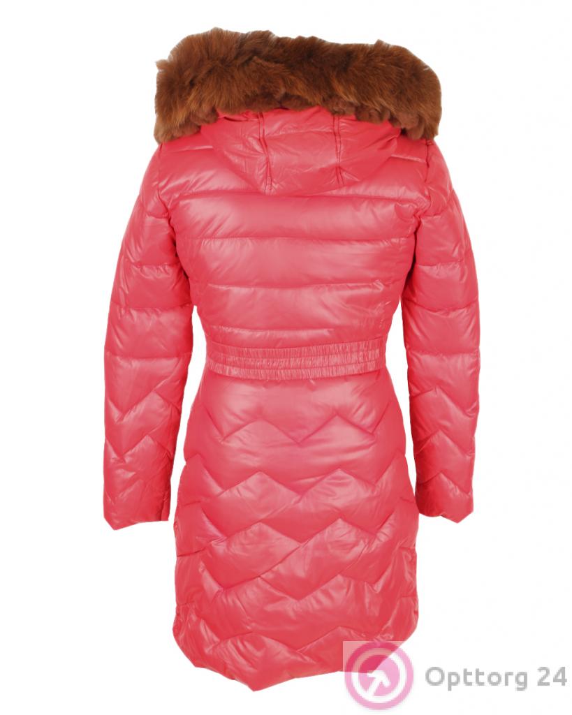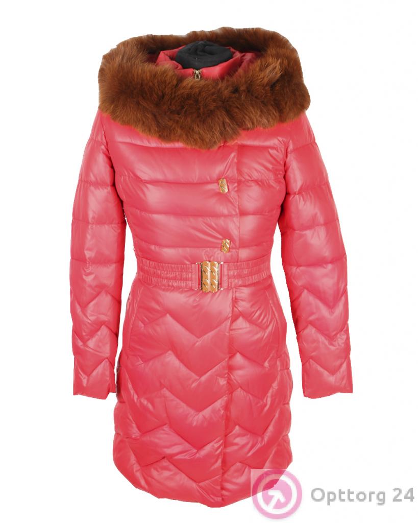 Пуховик женский красный с мехом песца оптом