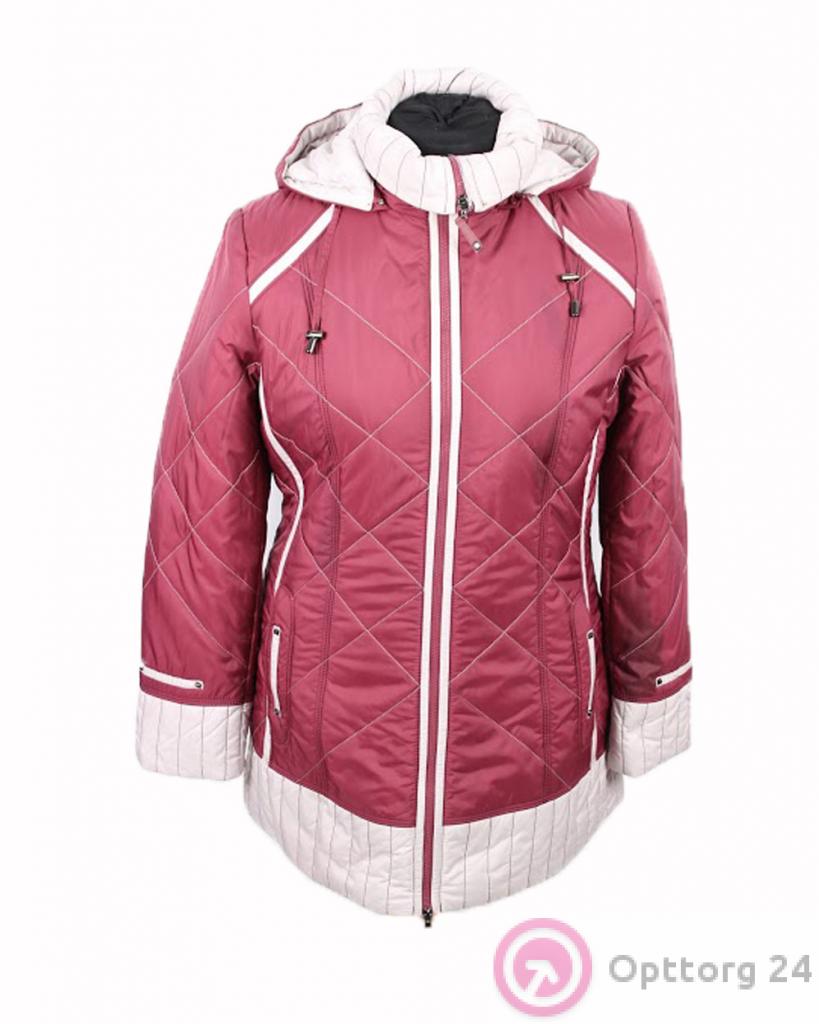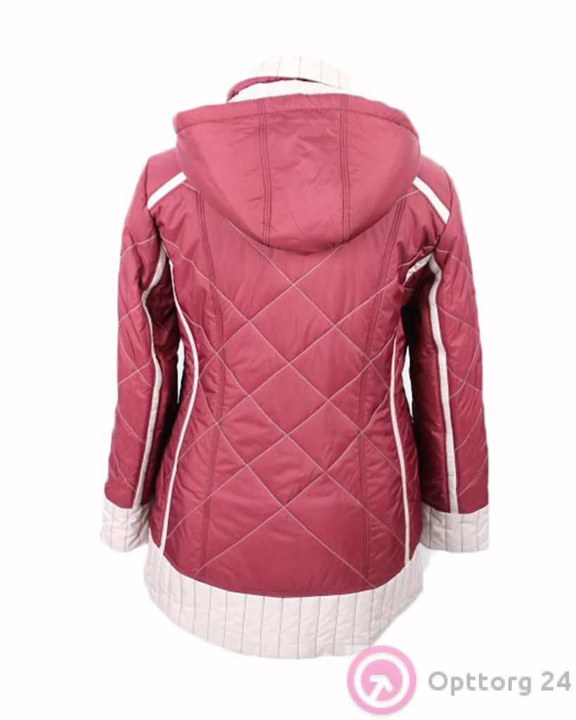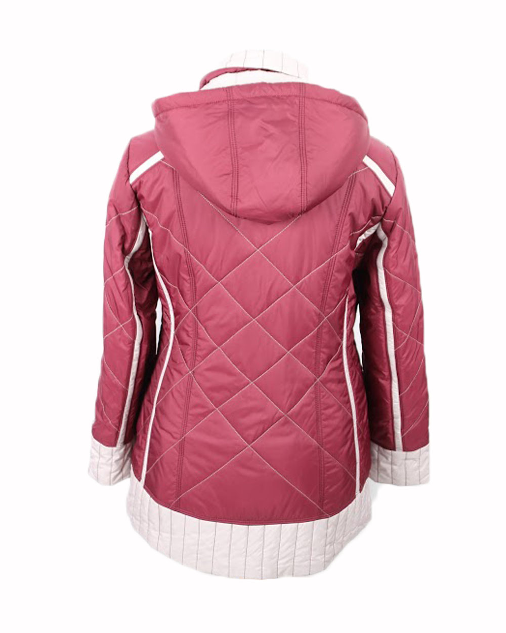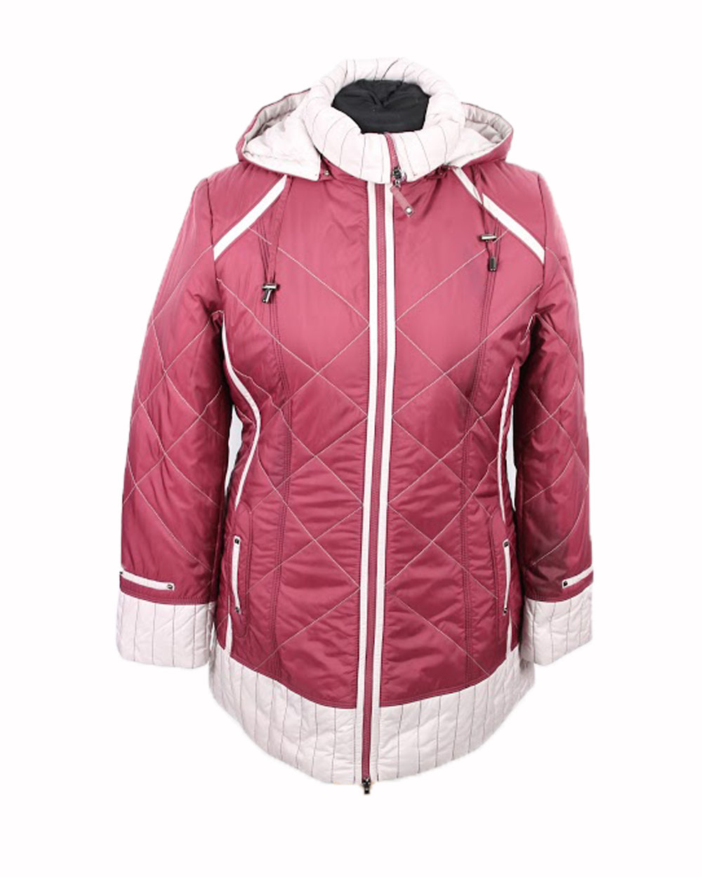 Пуховик женский стёганый. Застегивается на молнию и имеет воротник-стойку. Капюшон отстегивается.