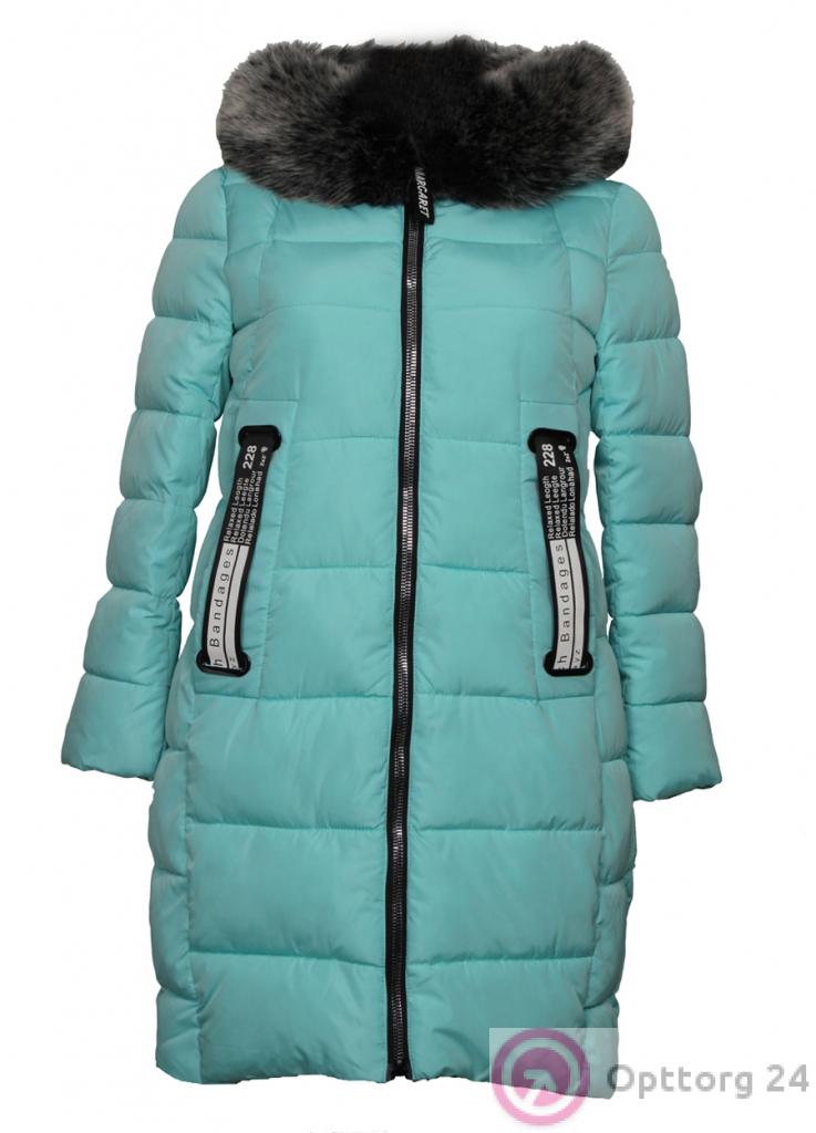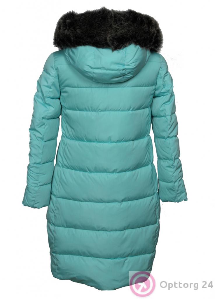 Пуховик женский на двойном синтепоне с искусственным мехом бирюзовый оптом