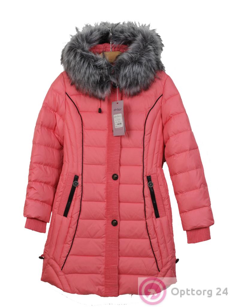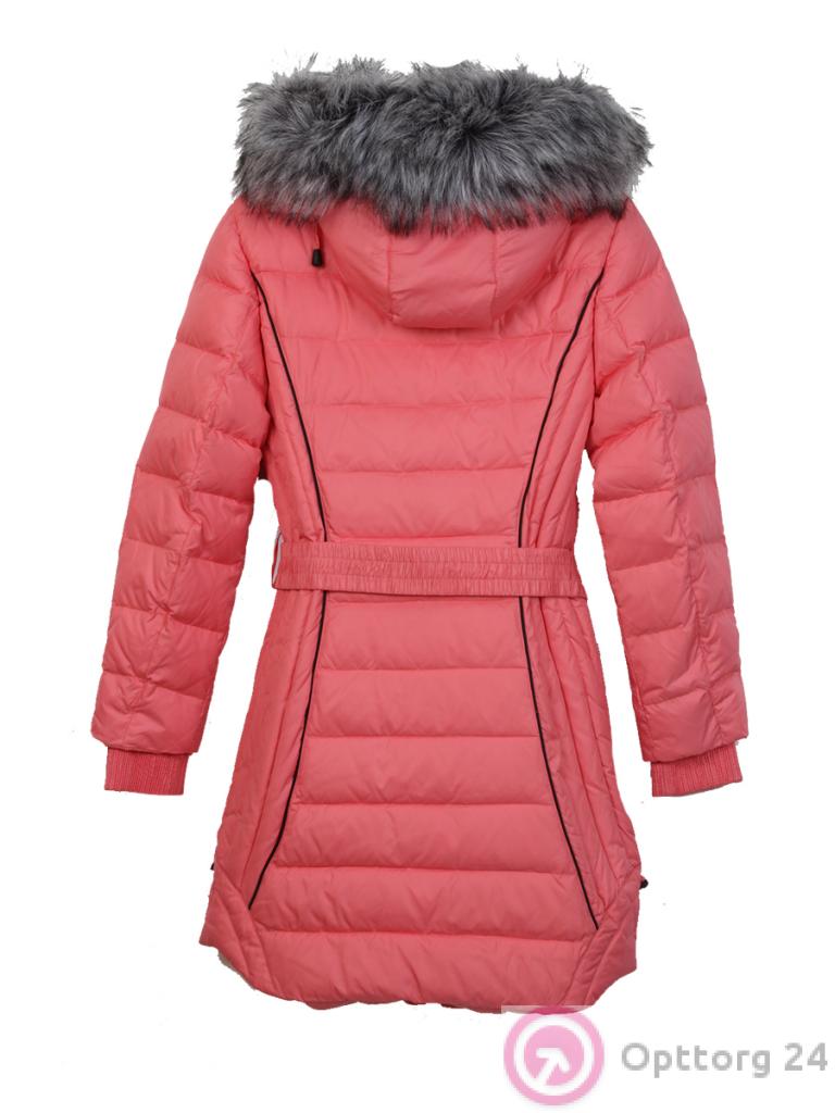 Пуховик женский на холлофайбере коралловый с мехом оптом
