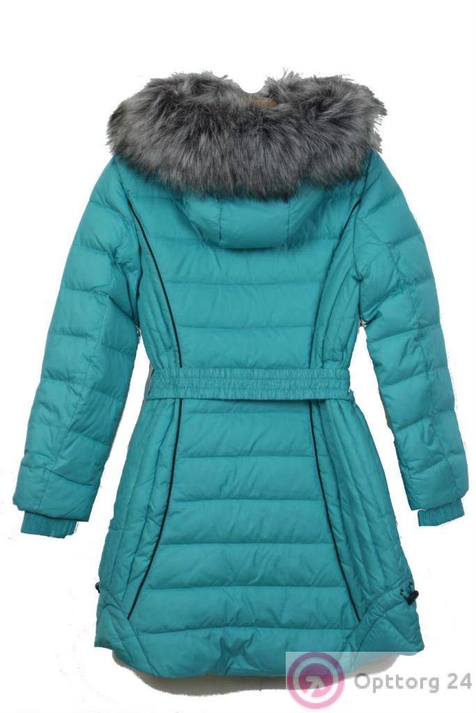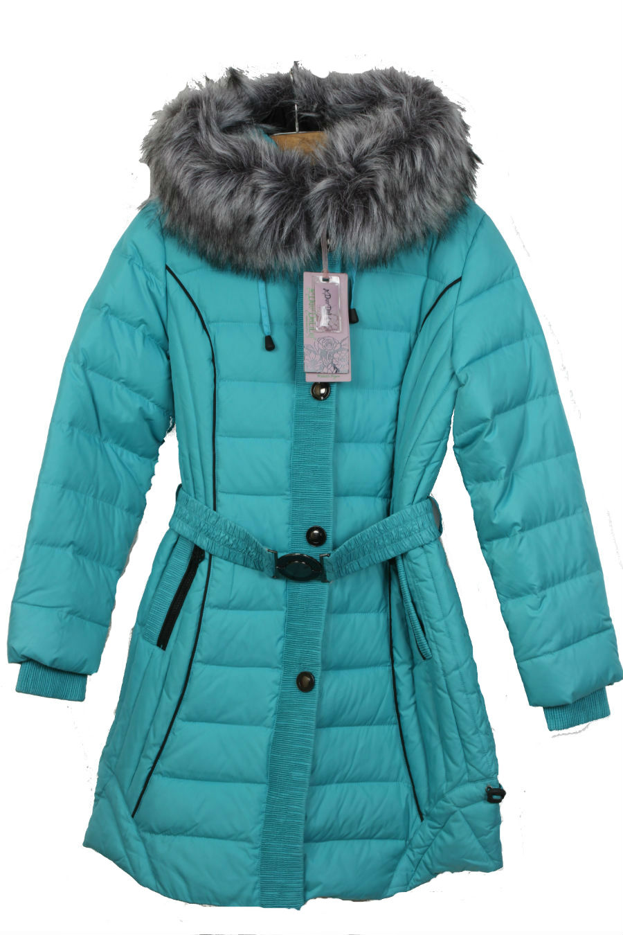 Пуховик женский на холлофайбере бирюзовый с мехом оптом