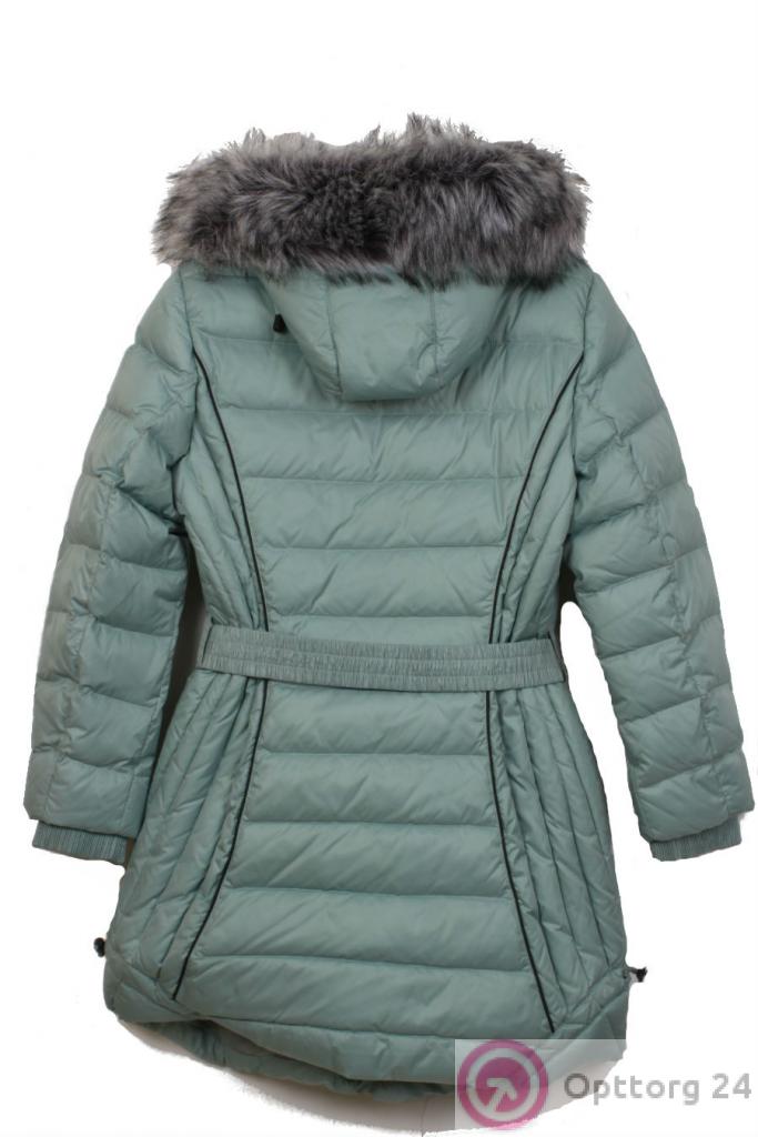 Пуховик женский на холлофайбере мятный с мехом оптом