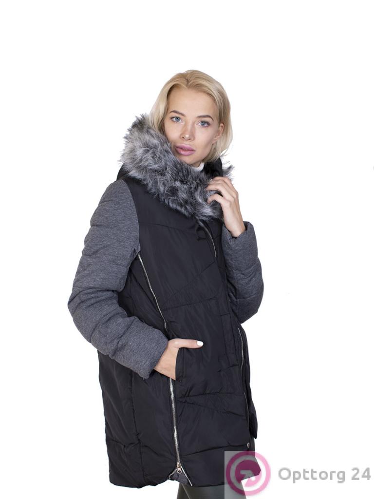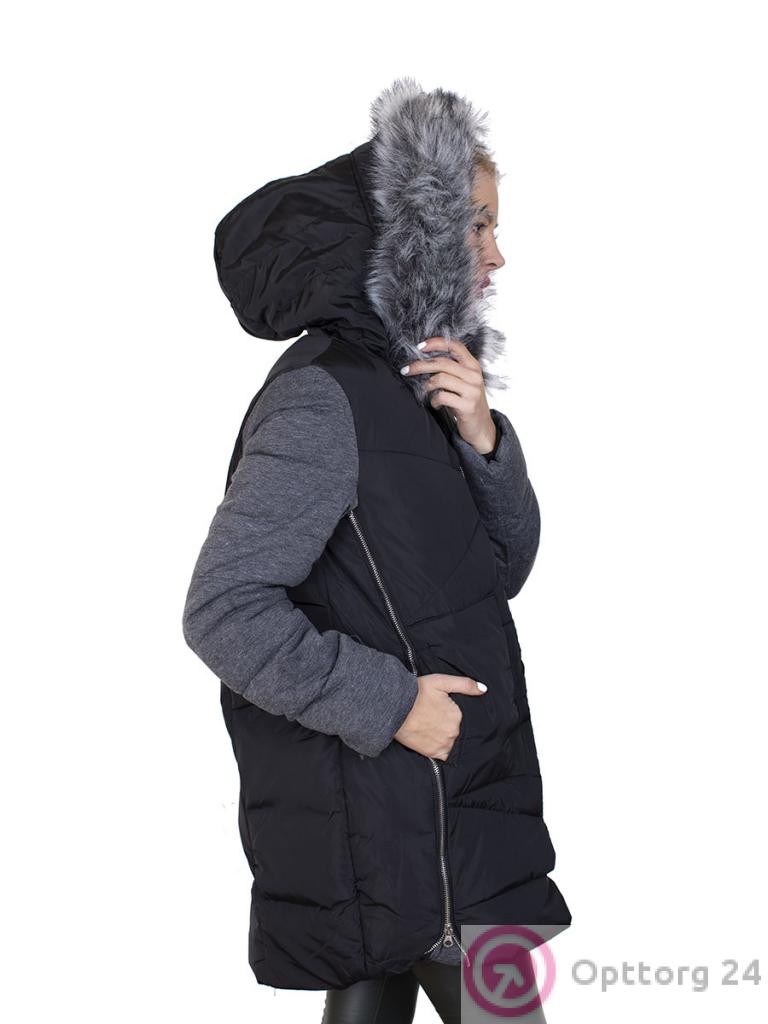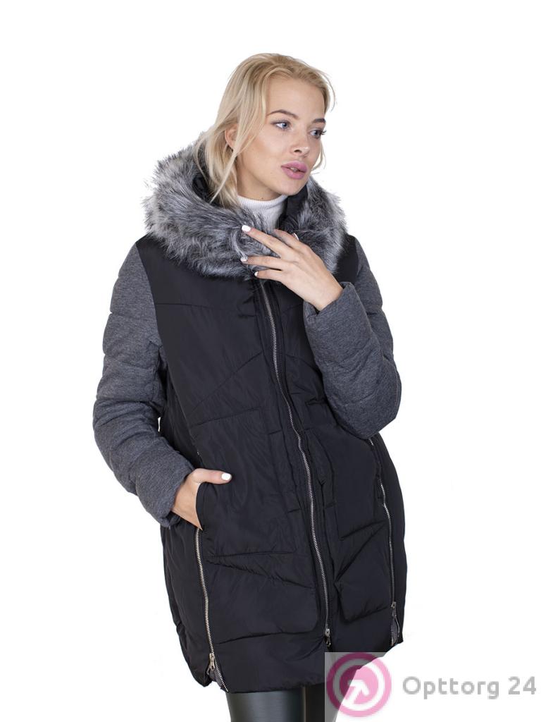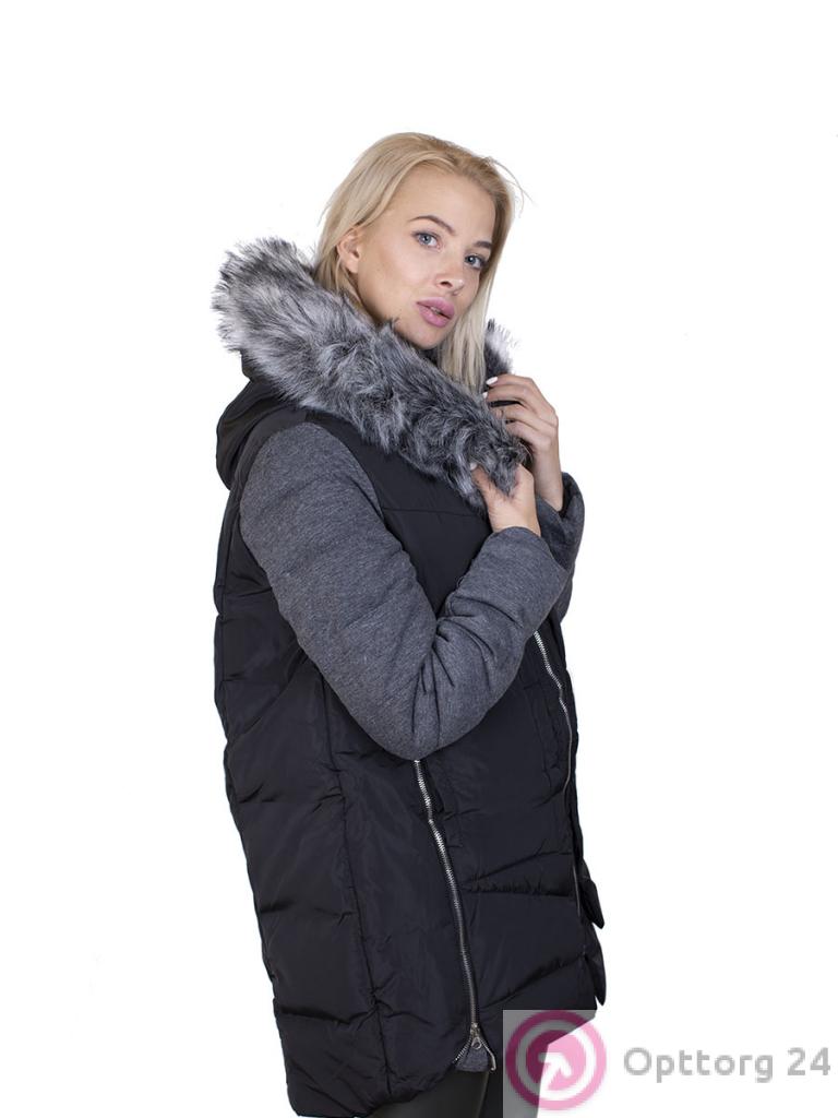 Пуховик женский на синтепоне цвет черно-серый оптом