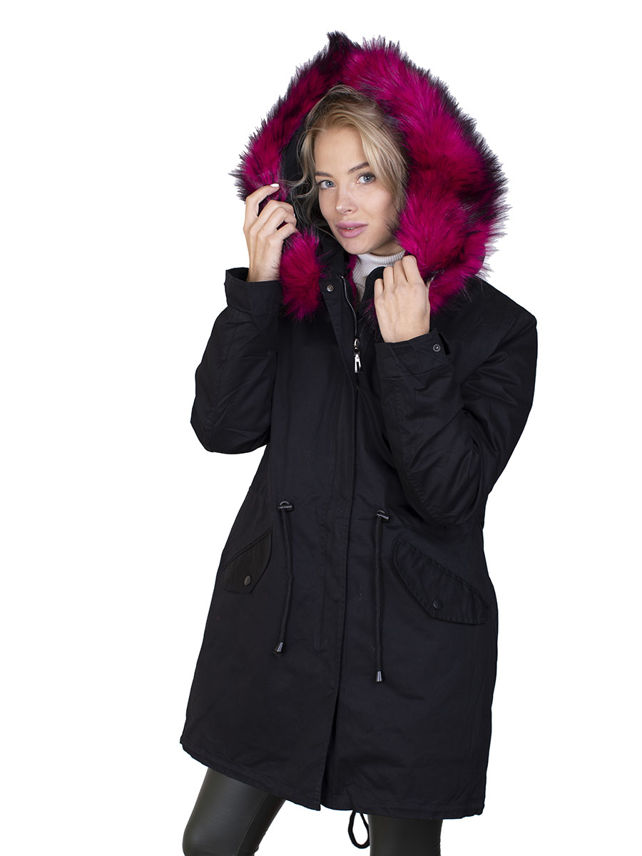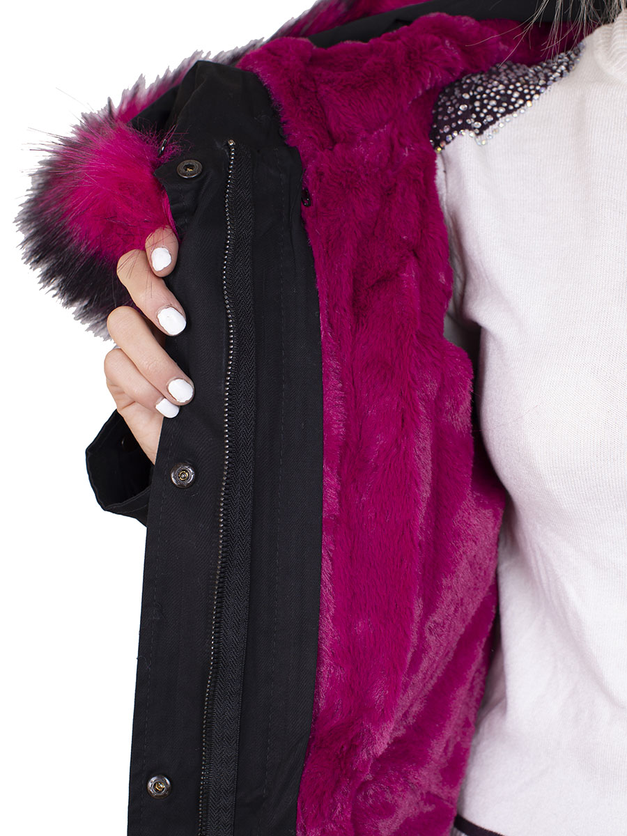 Описание: Пуховик женский на синтепоне прямого кроя. На капюшоне искусственный мех, есть два кармана. Застежка на молнии. На талии есть шнурок.