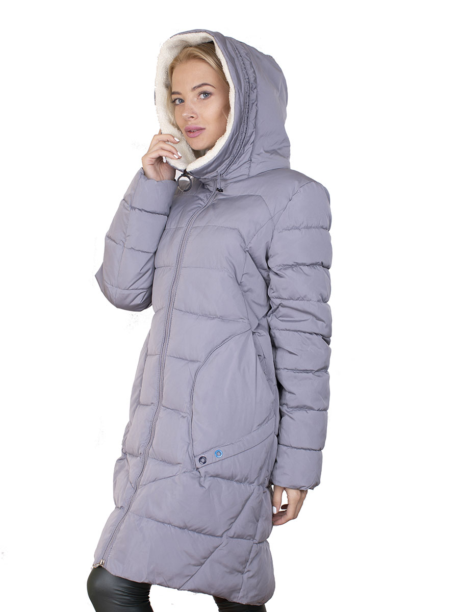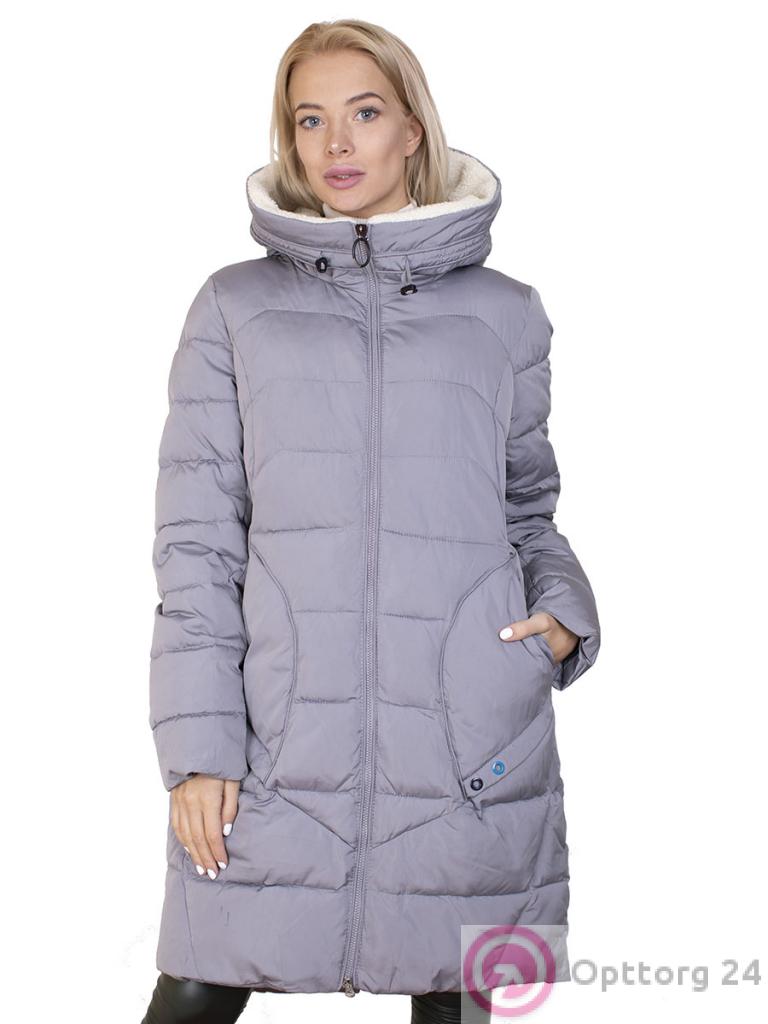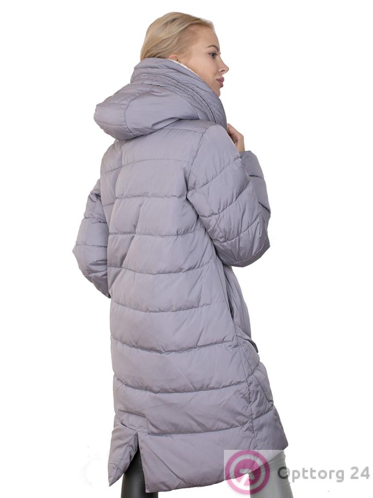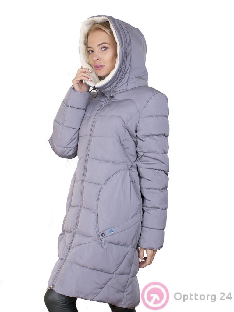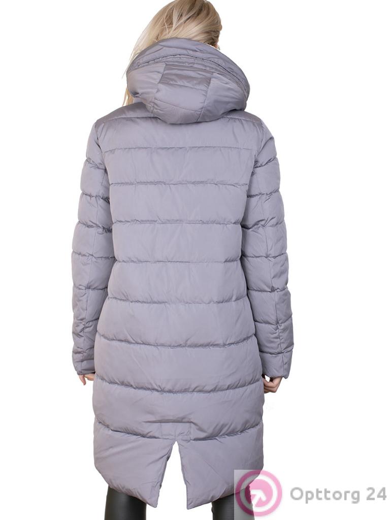 Пуховик женский на синтепоне серого цвета с капюшоном оптом