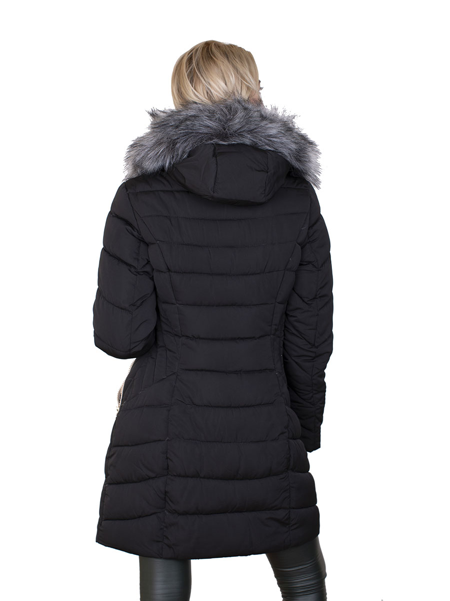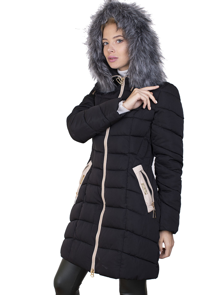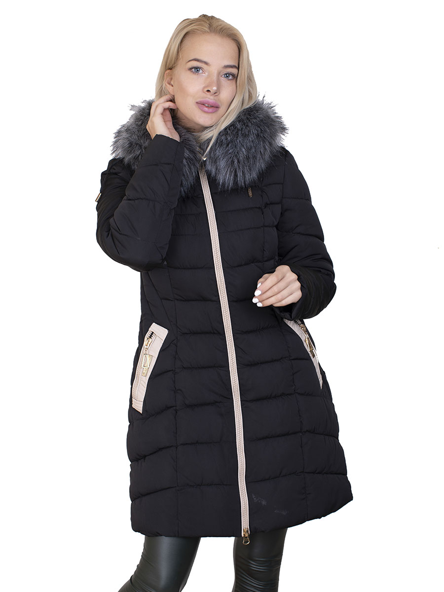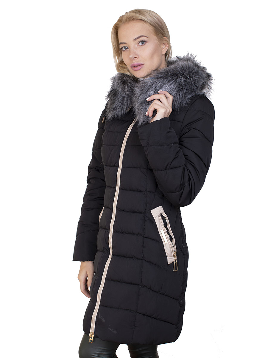 Описание: Пуховик женский не синтепоне со светлыми вставками. Имеется капюшон с искусственным мехом. Застежка на молнии, есть два кармана.