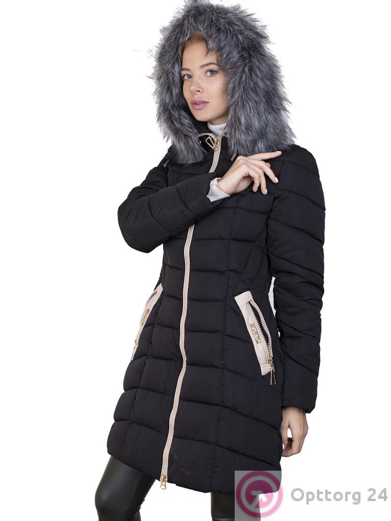 Пуховик женский не синтепоне со светлыми вставками оптом