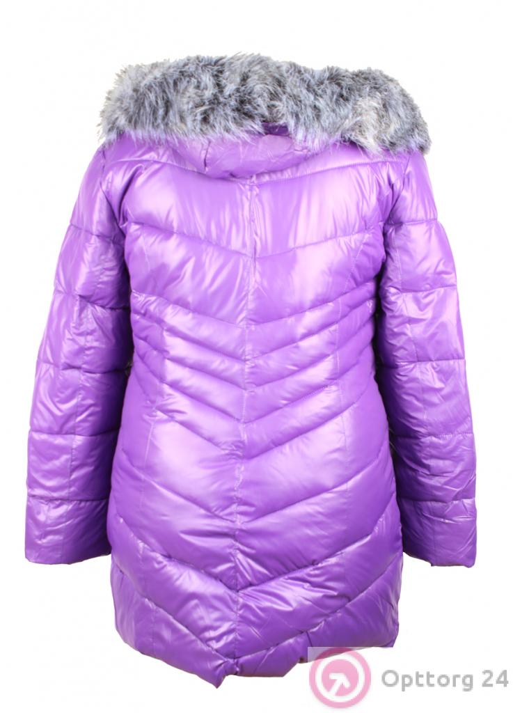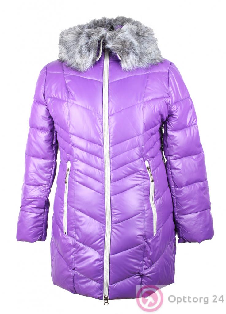 Пуховик женский с искусственным мехом фиолетовый оптом