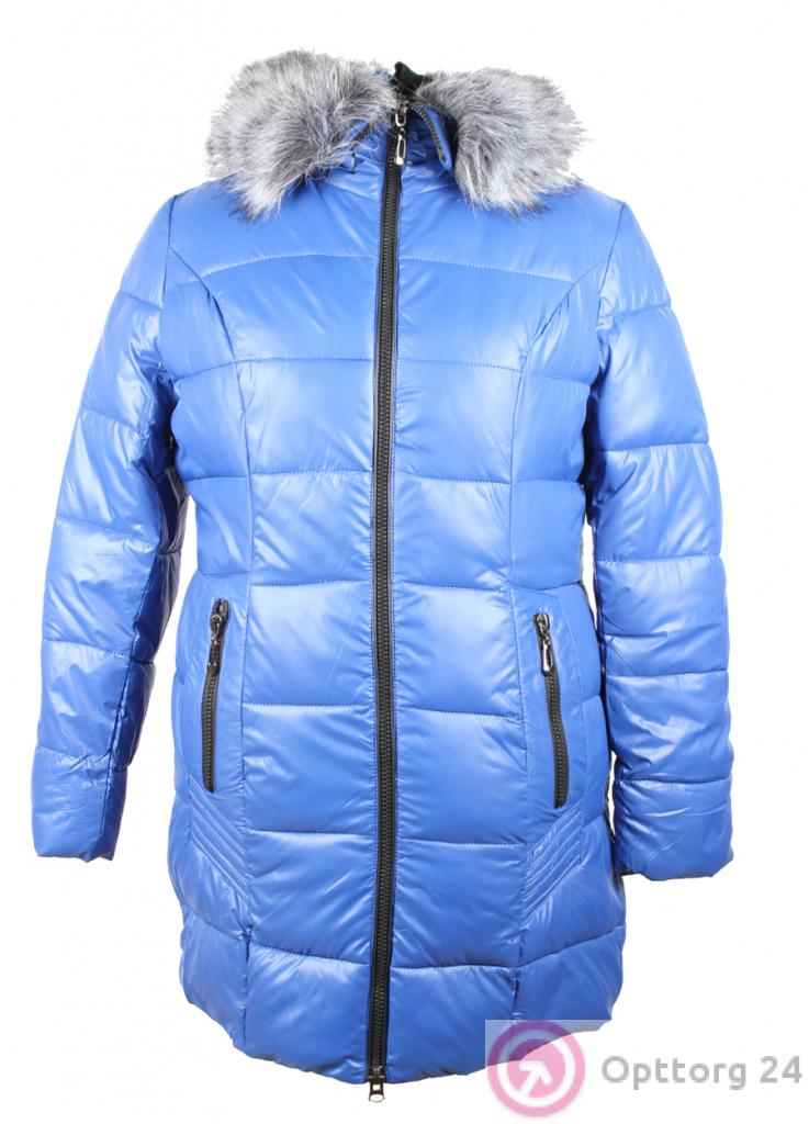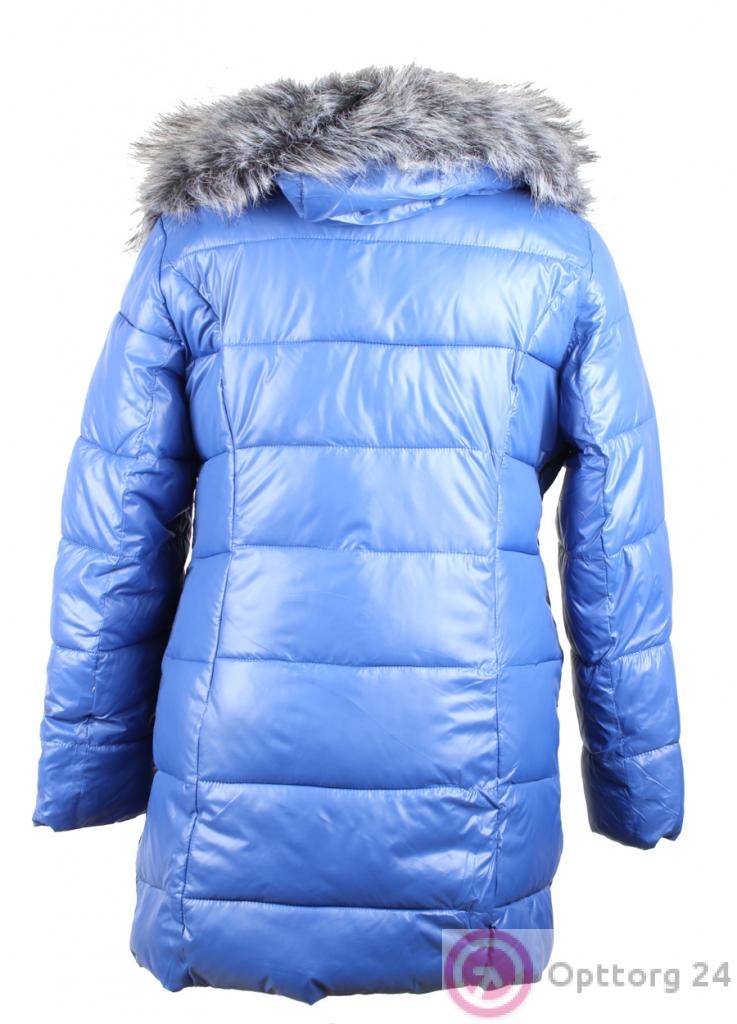 Качественный синий пуховик на двойном синтепоне, с добавлением искуственного меха, капюшоном и высоким воротом