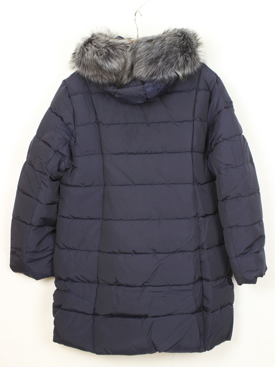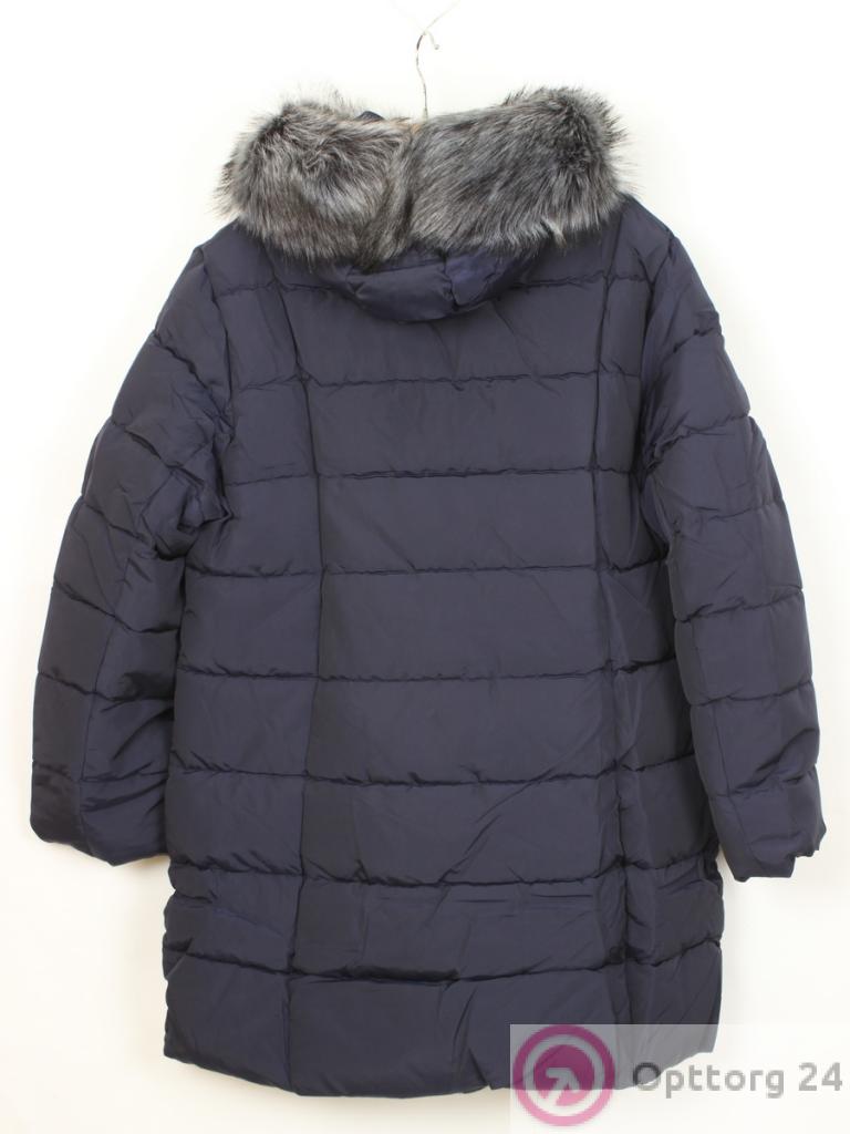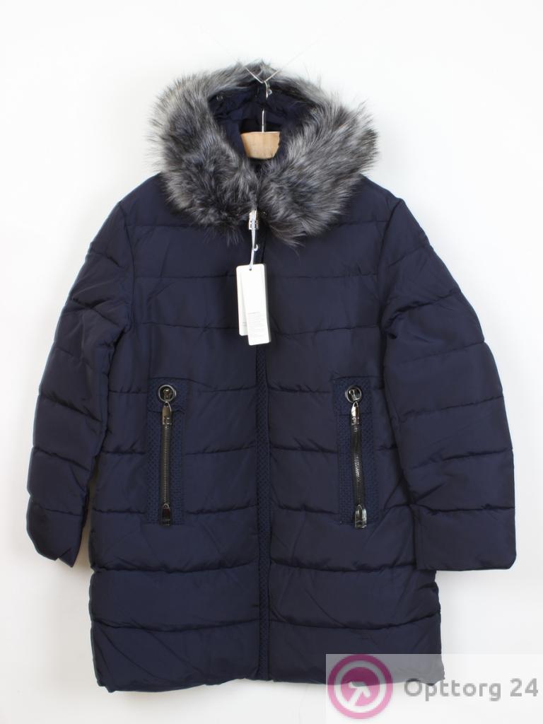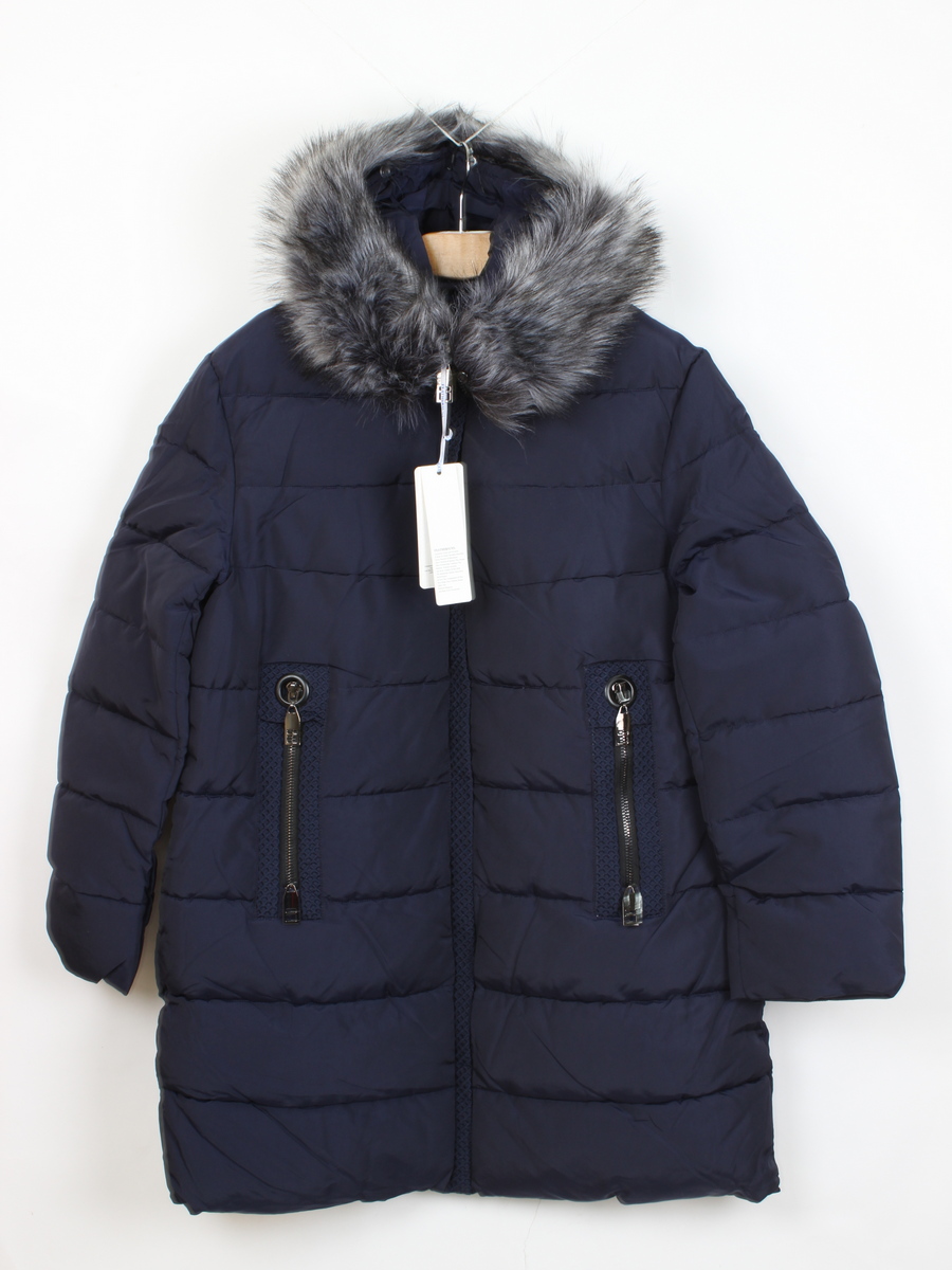 Зимний женский пуховик синего цвета с карманами и капюшоном (мех отстегивается). Очень теплая модель свободного силуэта. Длина изделия выше колена.