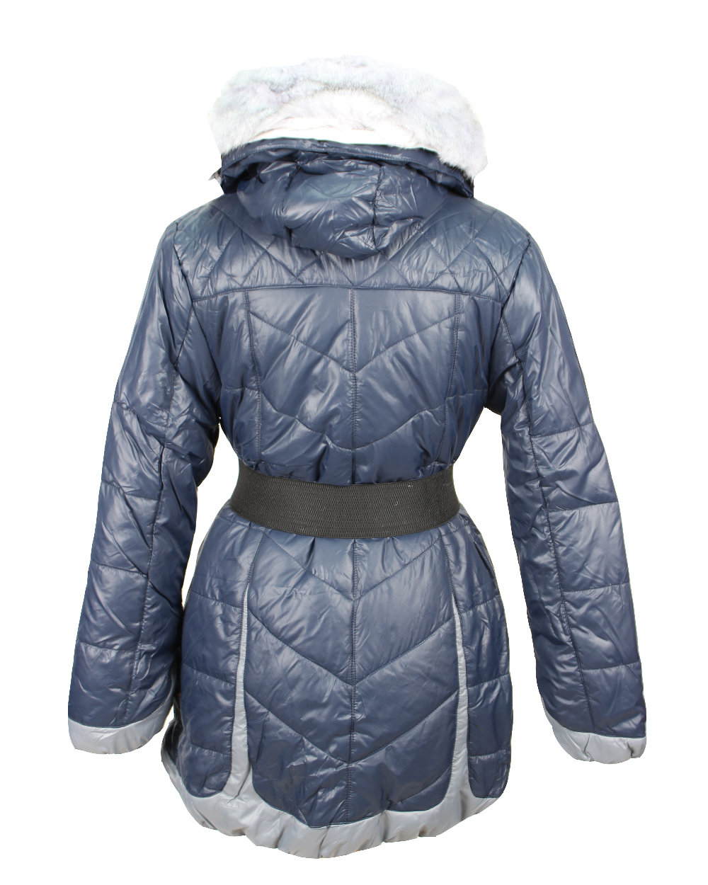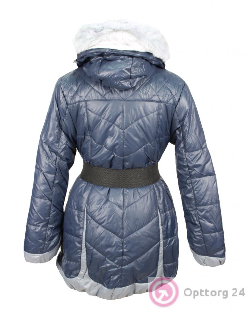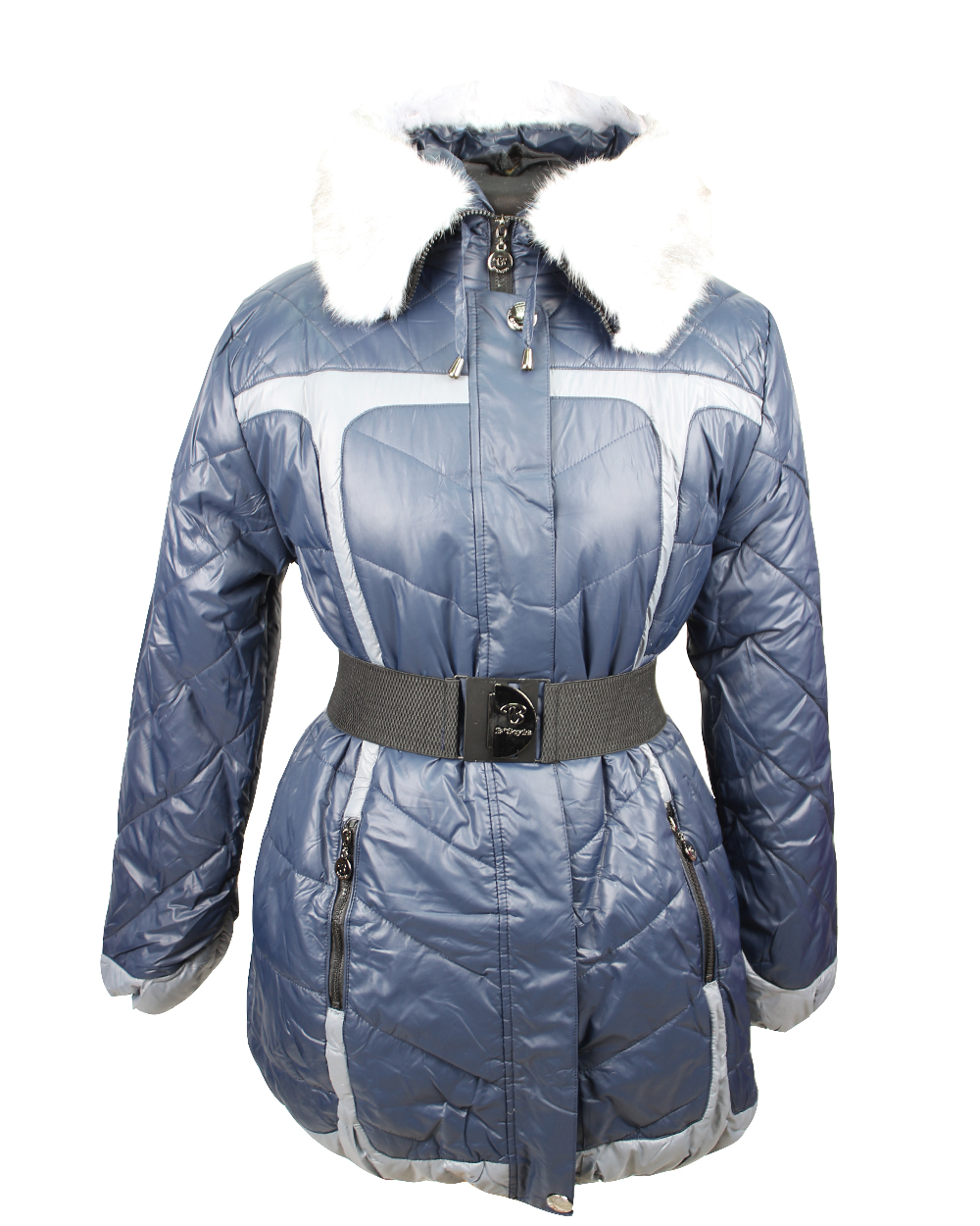 Женский пуховик с эластичным поясом в комплекте. Карманы на молнии, ветрозащитная планка. Мех на воротнике искуственный.