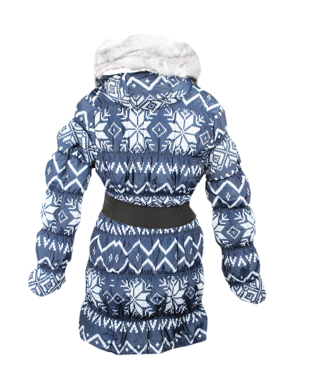 Симпатичный женский пуховик с капюшоном. Капюшон украшен искуственным мехом. Утеплитель - синтепон.