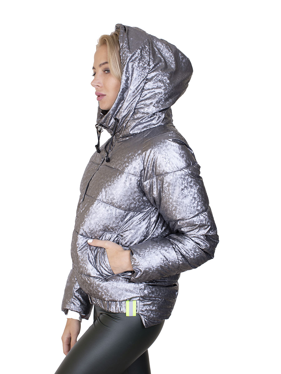 Описание: Пуховик женский укороченный на синтепоне молодежного стиля. Снизу резинка. Имеется капюшон, два кармана. Застежка на молнии.