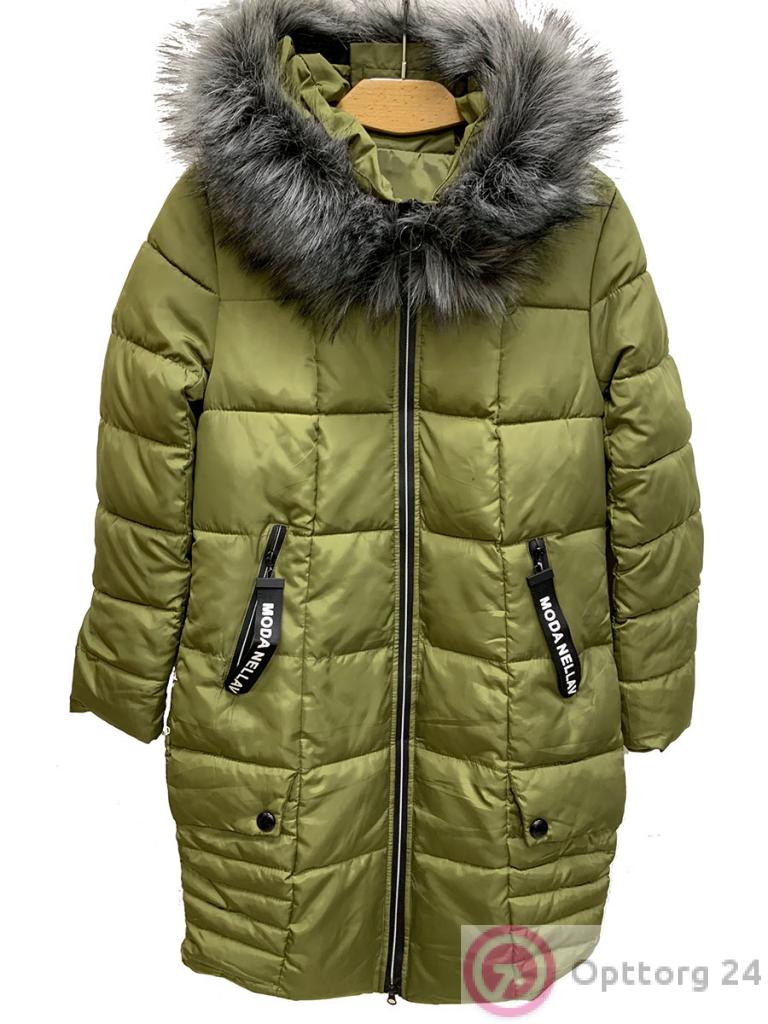 Пуховик женский зимний на синтепоне прямого кроя классического стиля оптом