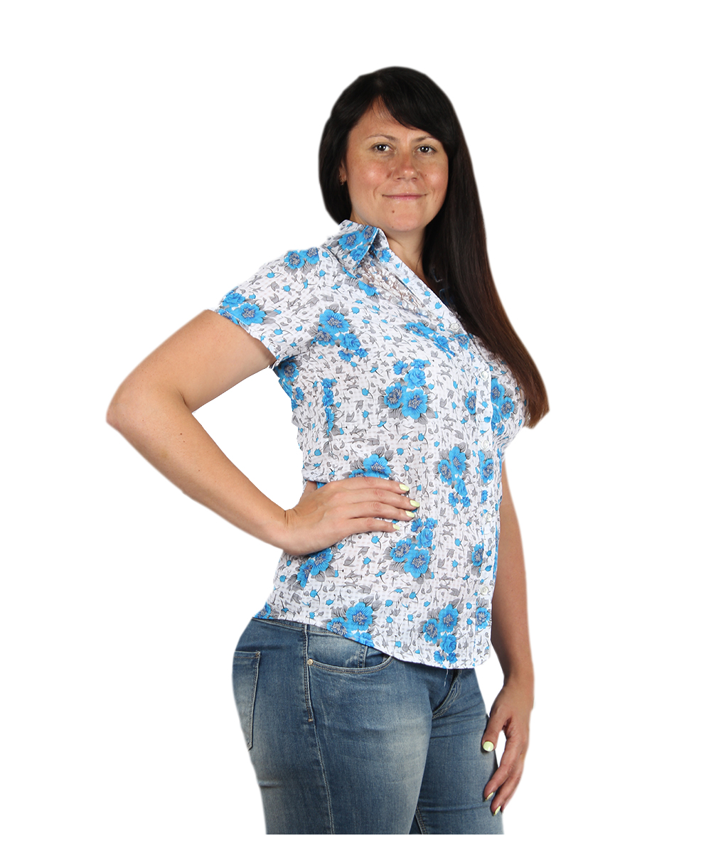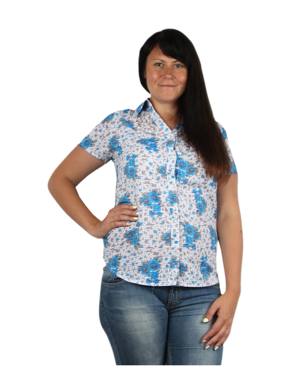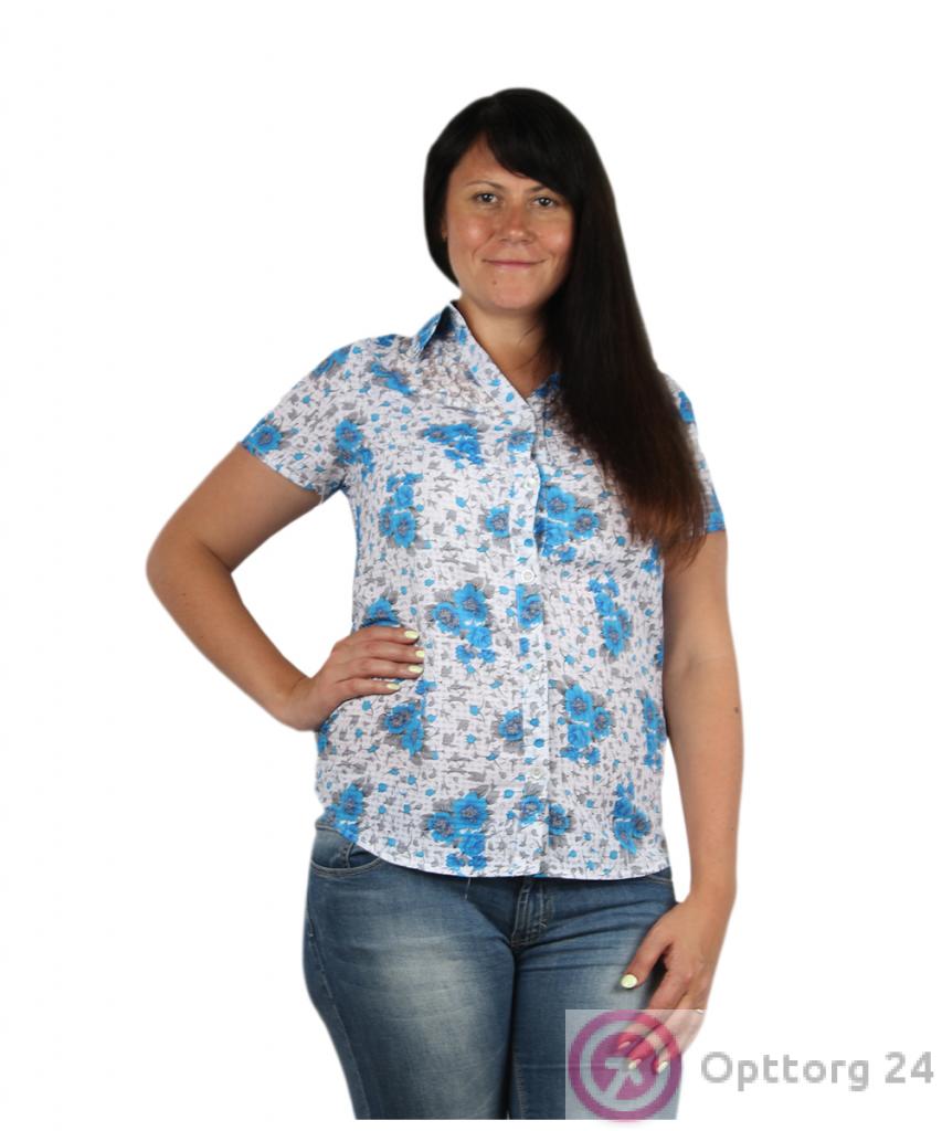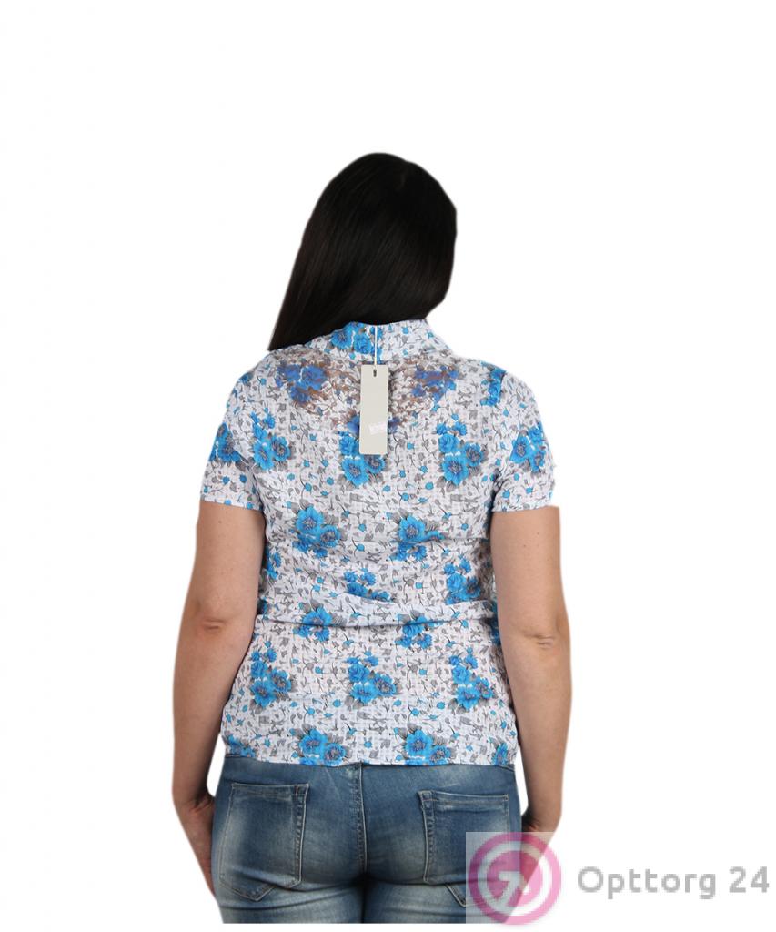 Рубашка женская бела с бирюзовым цветочным принтом оптом
