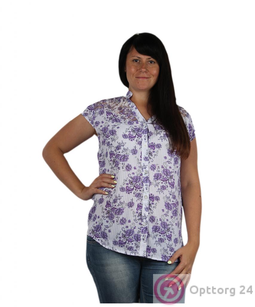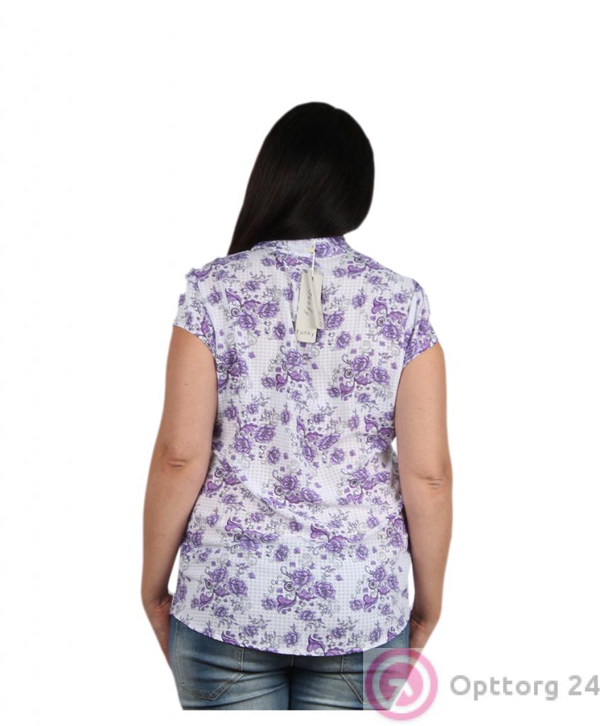 Рубашка женская бела с сиреневыми цветами оптом
