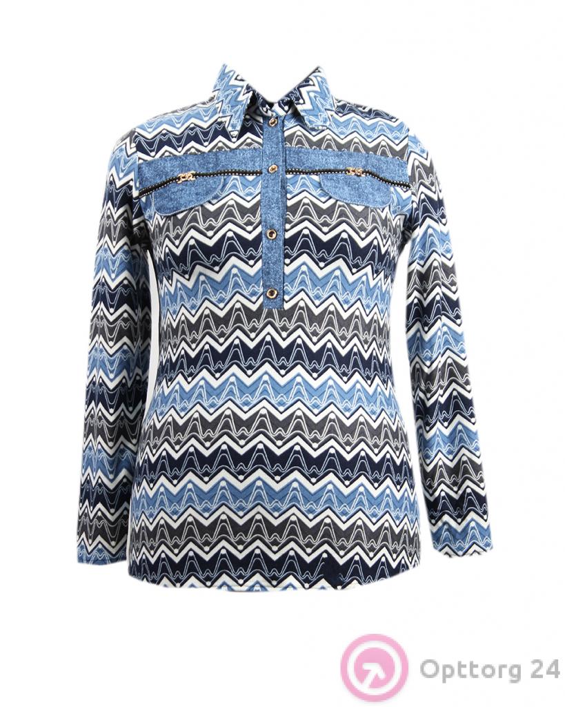 Женская рубашка с отложным воротником и длинными рукавами. Модель имеет имитацтию нагрудных карманов.