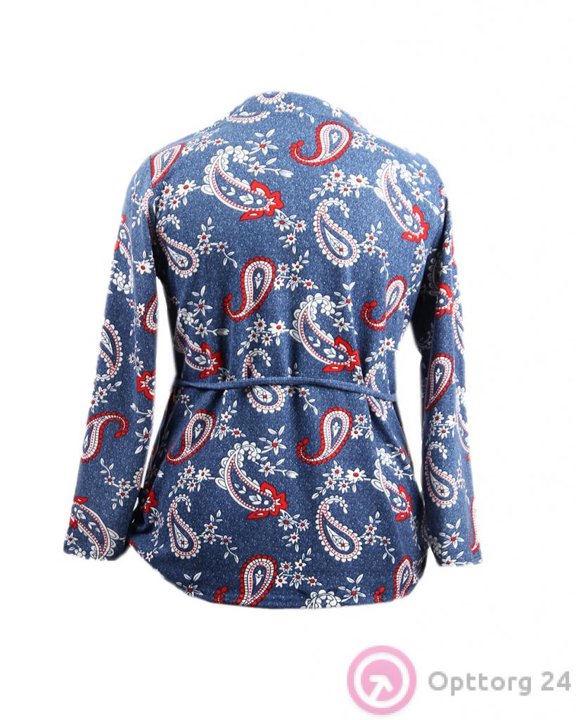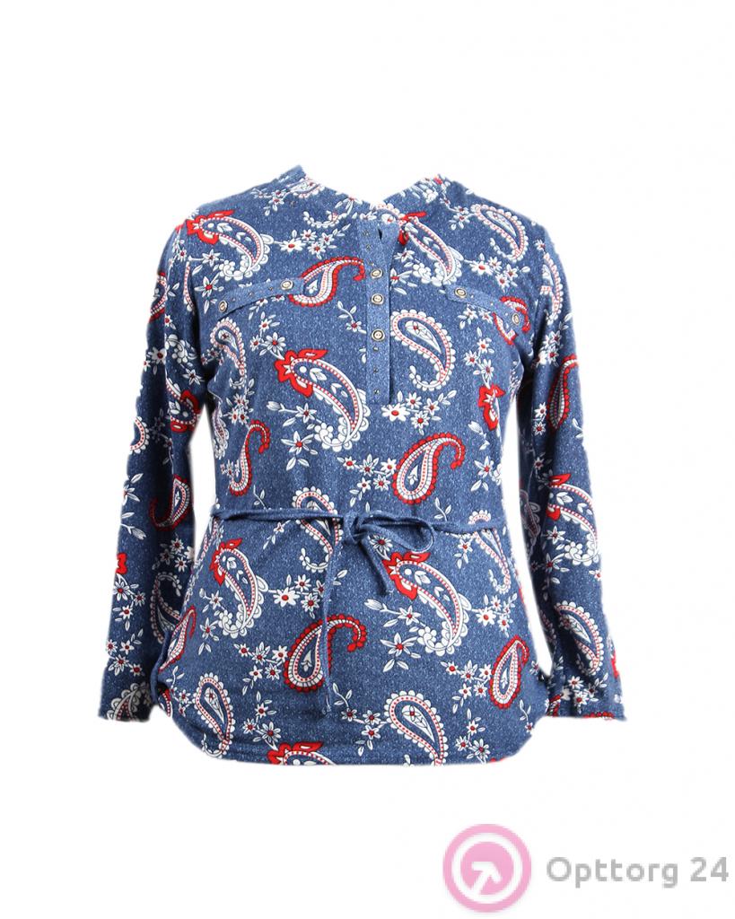 Рубашка женская синяя с принтом и поясом оптом