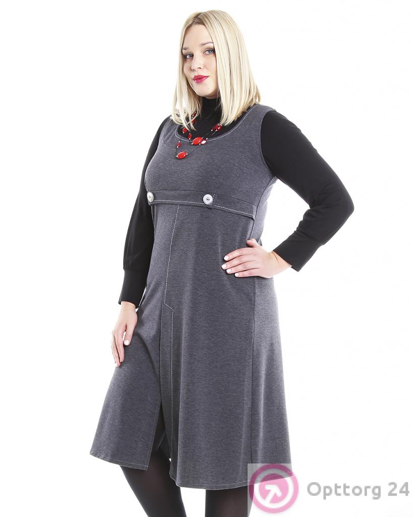 Сарафан женский серого цвета с пуговицами на поясе. оптом