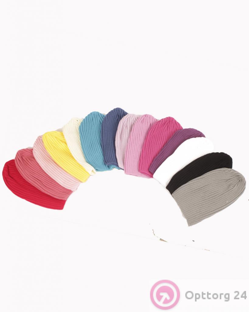 Шапки женские двухслойный трикотаж яркие цвета оптом