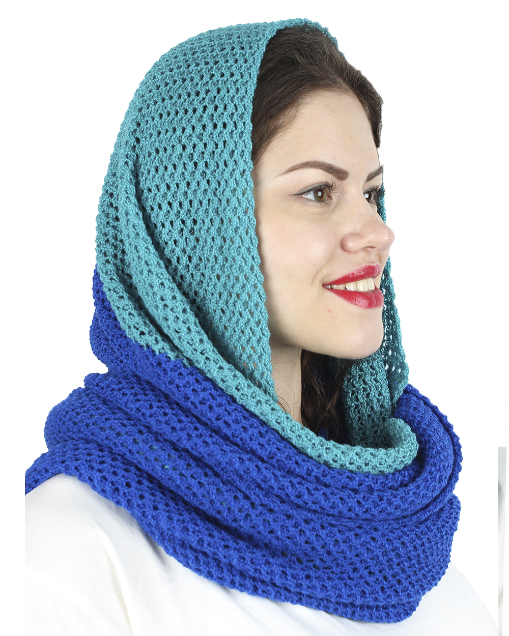 Легкий фактурный шарф-хомут голубо-синего цвета. Изделие отлично защитит от холода и ветра и станет прекрасным дополнением к вашему образу.