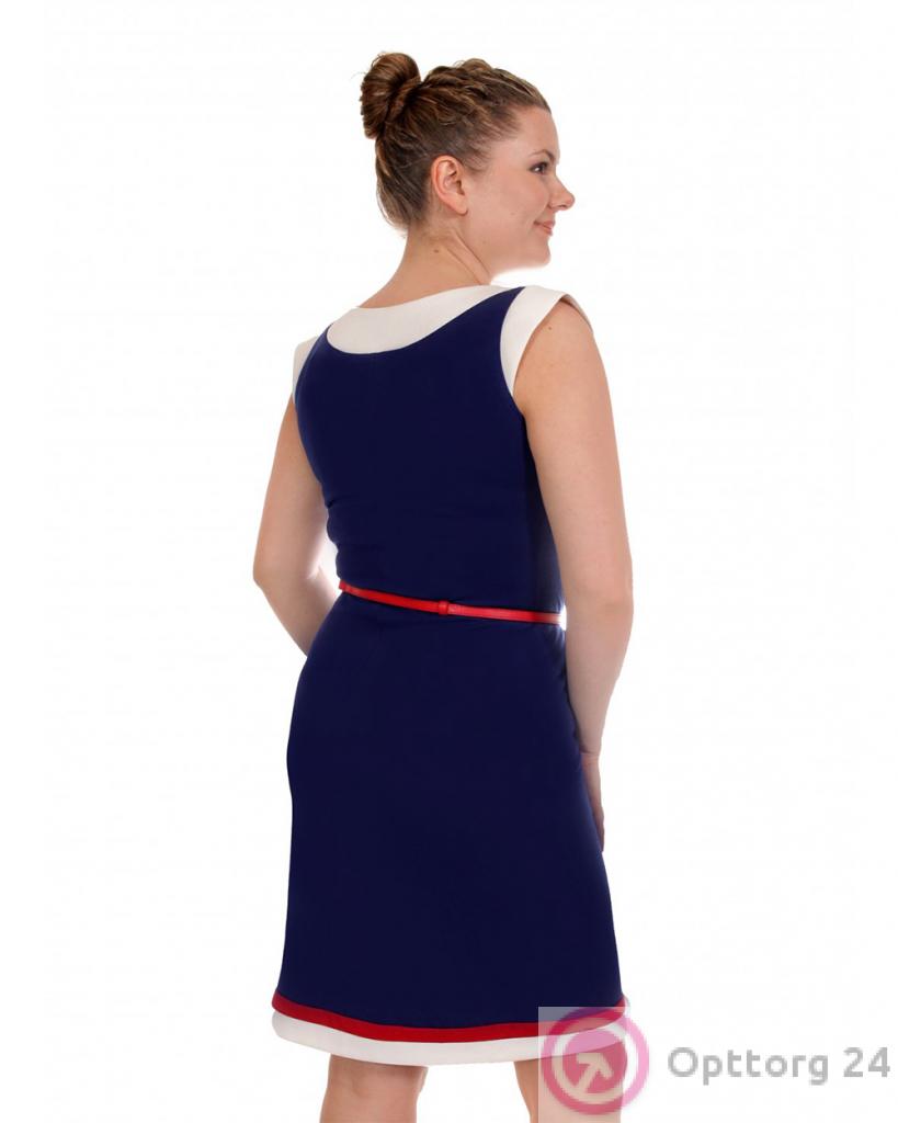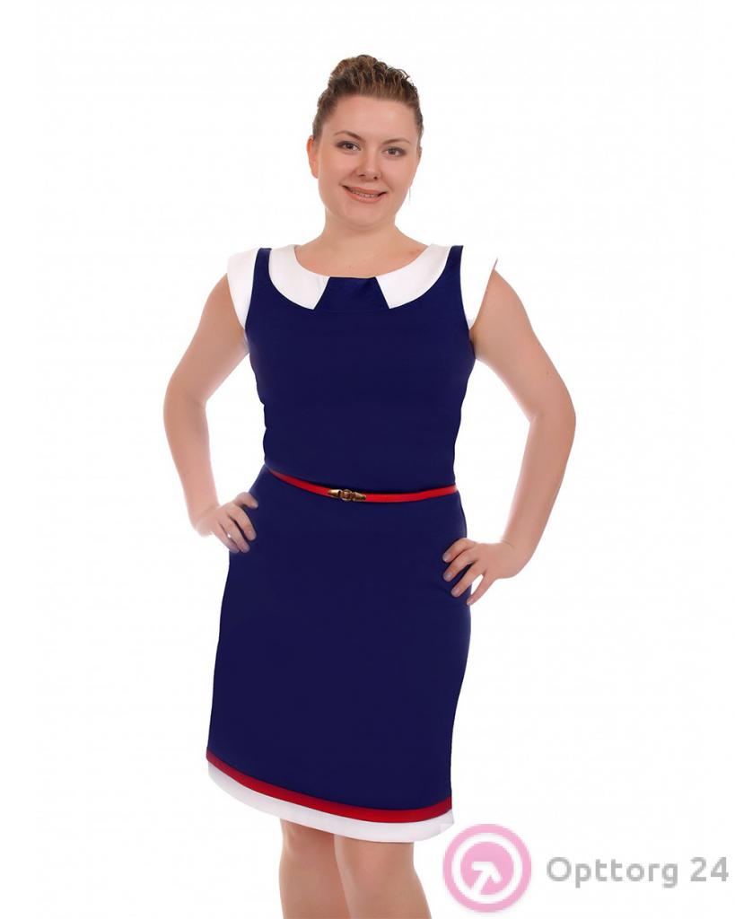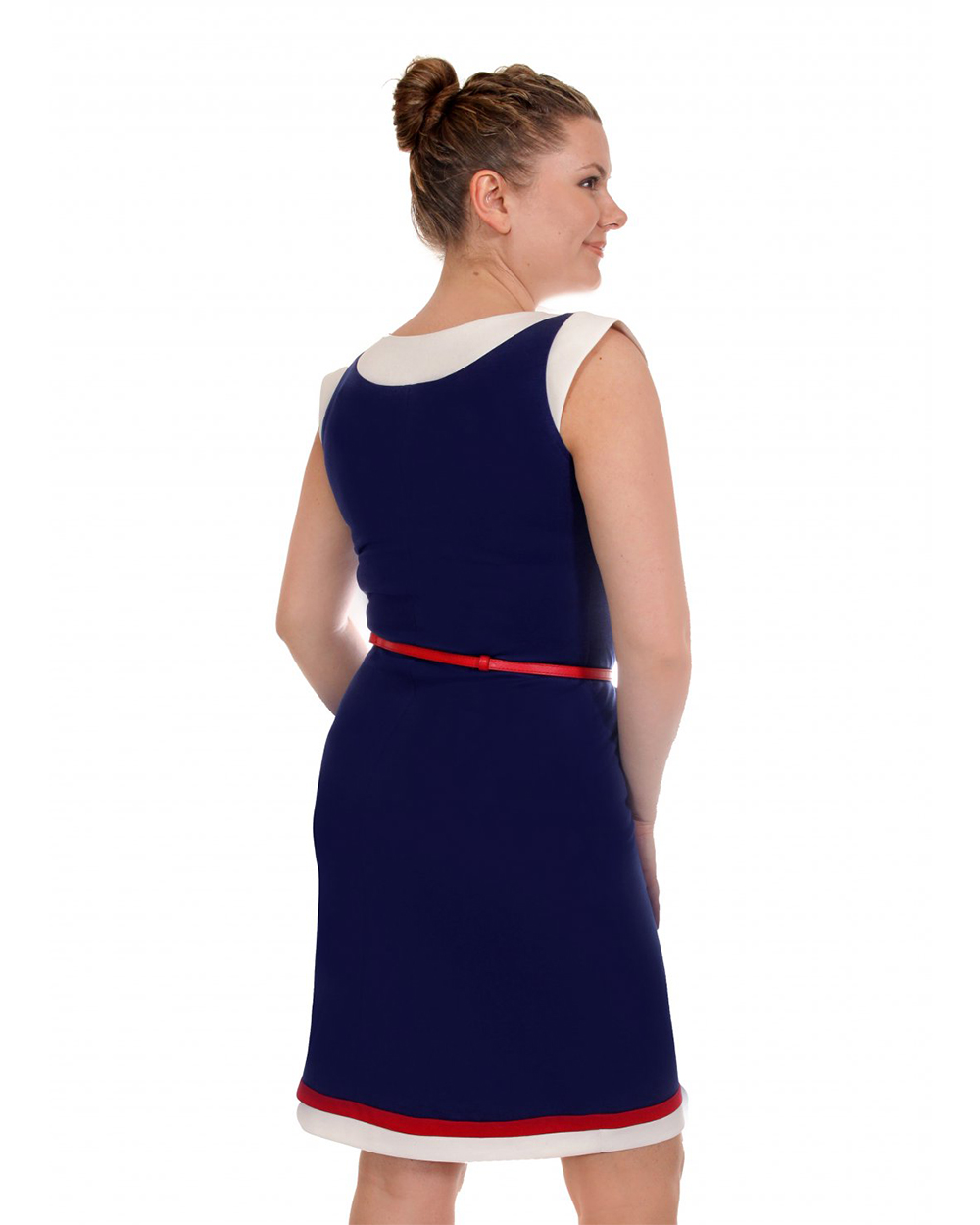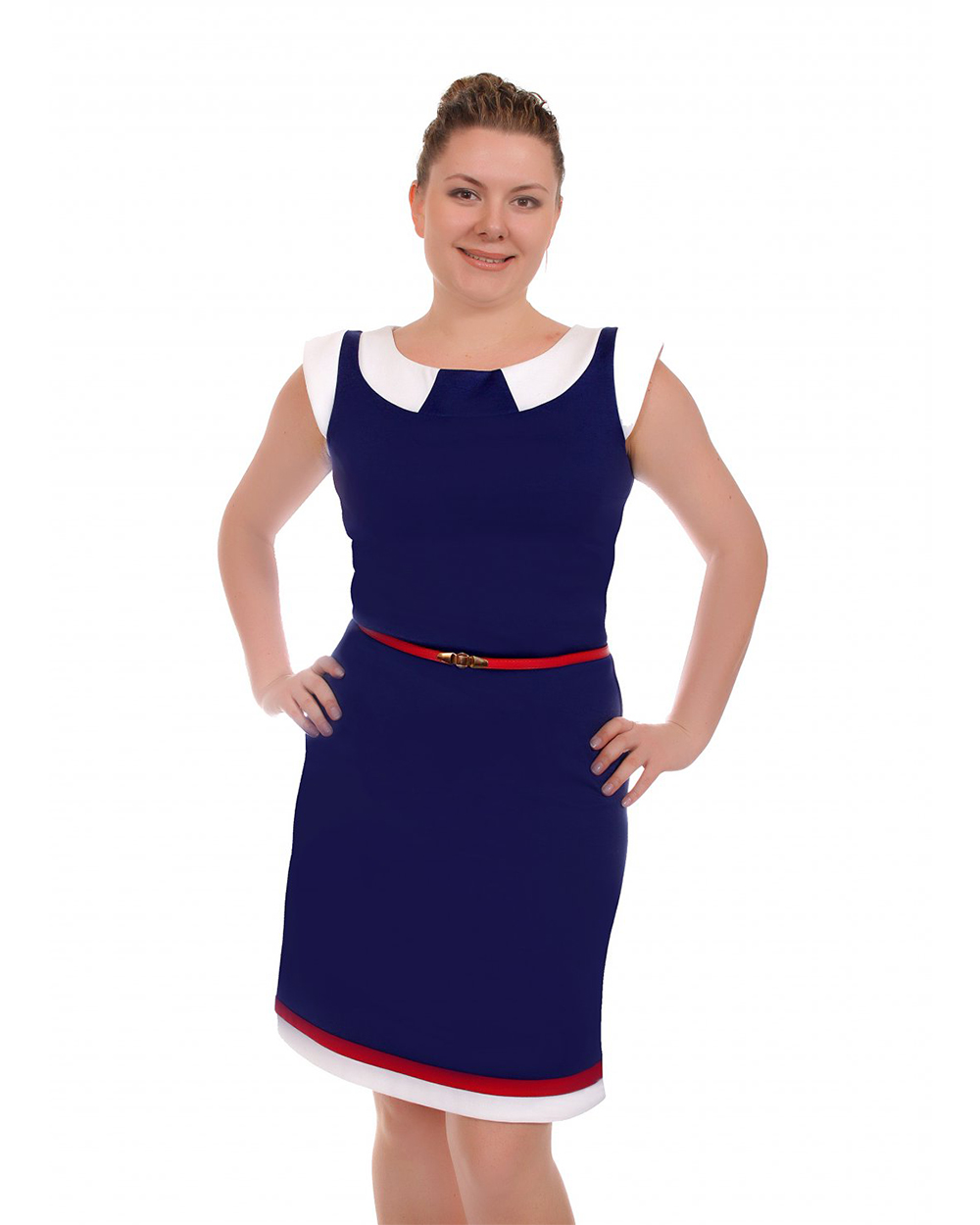 Оригинальное трикотажное платье модной в этом сезоне сине-красной расцветки. Модель дополнена красным ремешком, который подчеркнет вашу талию.