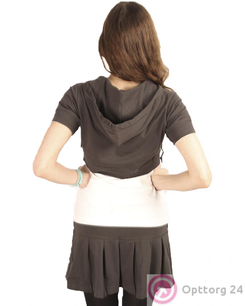 Костюм подростковый черно-белого цвета состоящий из футболки с капюшоном и шортами.