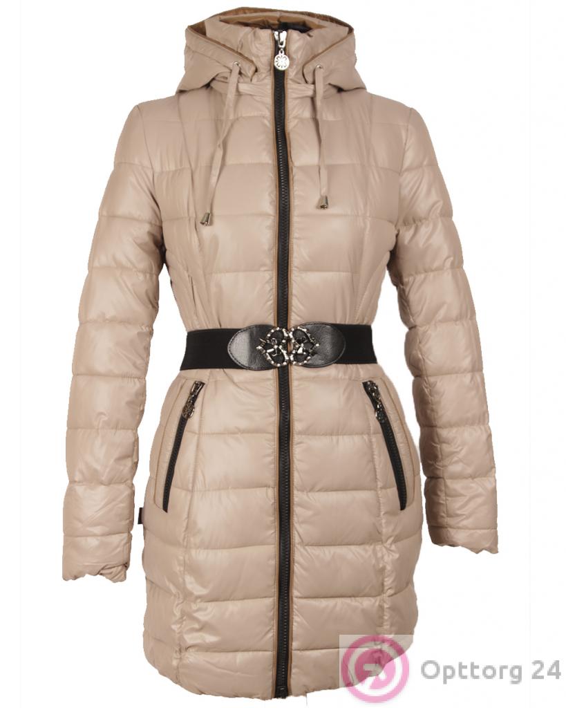 Стеганный пуховик приталенного кроя бежевого цвета оптом