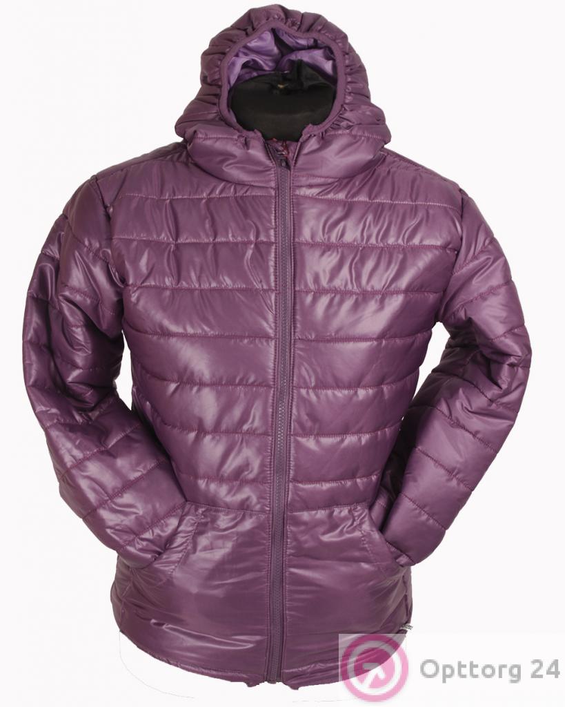 Стёганная куртка фиолетового цвета с капюшоном оптом