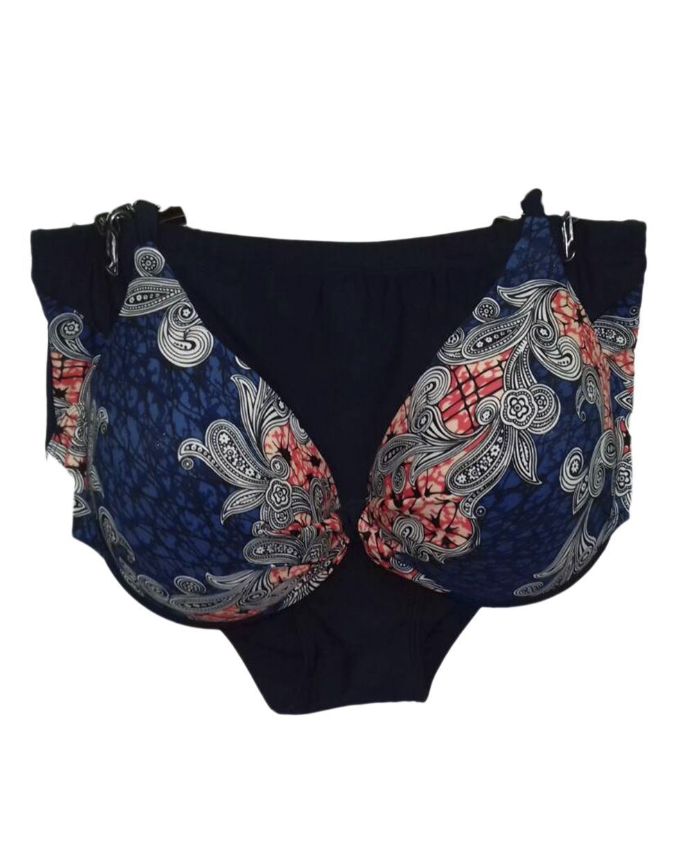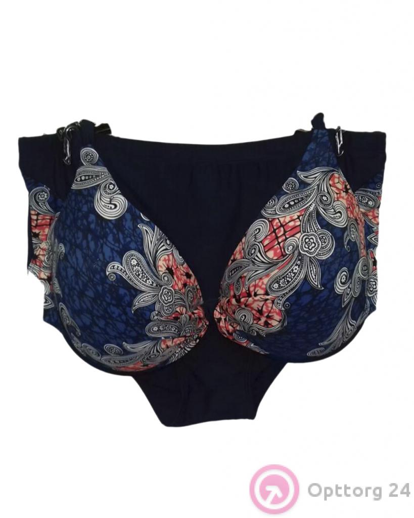 Аккуратный темно-синий купальник с лифом на бретелях. Мягкие чаши, плавки с вшитой резинкой.
