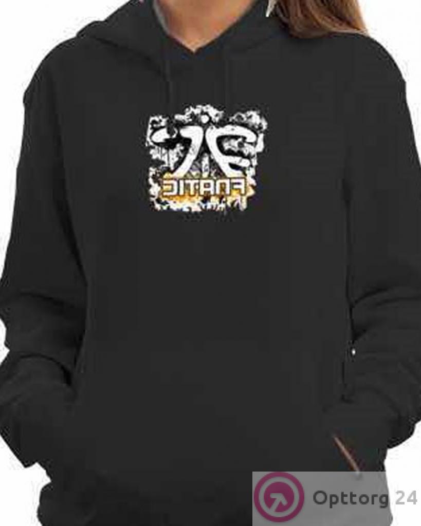 Толстовка с капюшоном черная с принтом, унисекс оптом