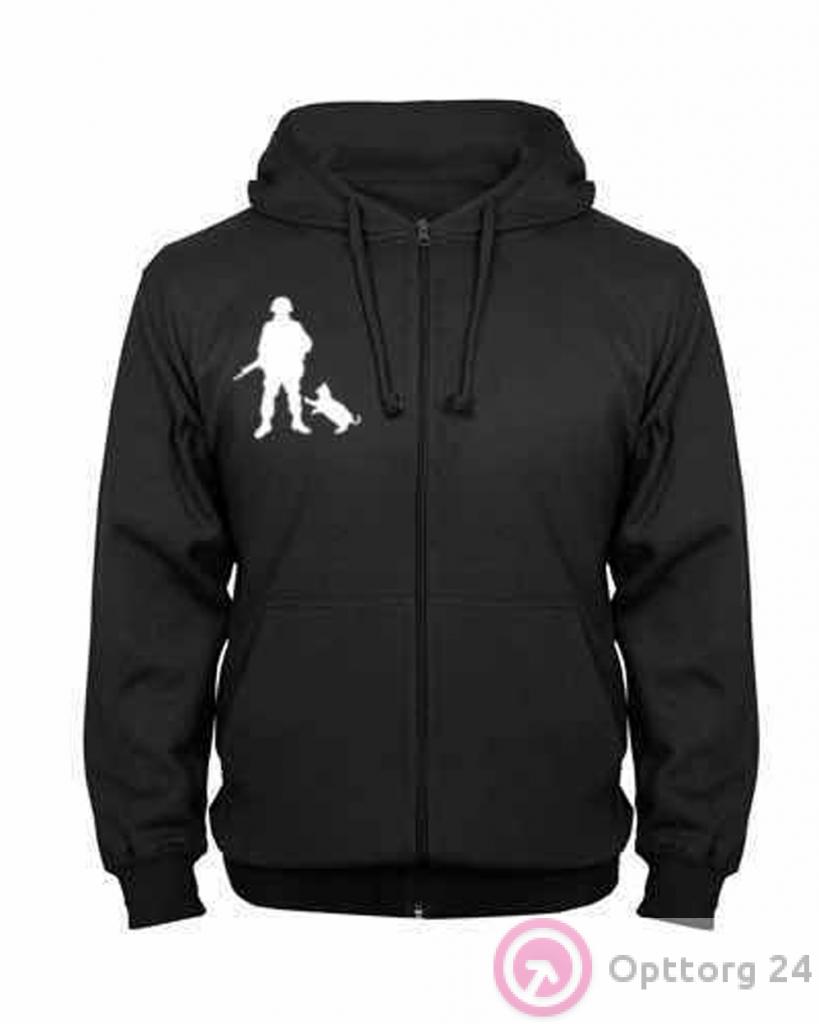 Качественная толстовка с капюшоном черного цвета с небольшим принтом на груди. Изделие застегивается на молни, по боках дв вместительных кармана. Прекрасный выбор для повседневной носки.