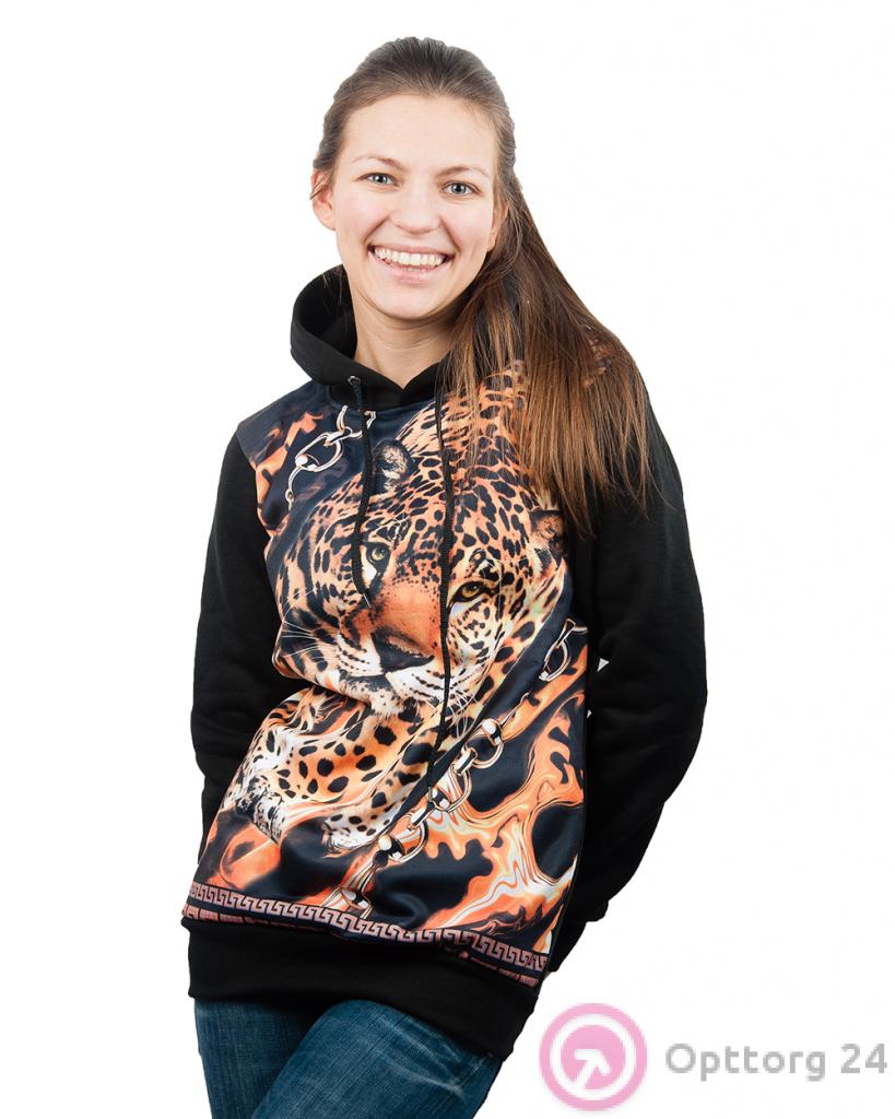 Толстовка женская черная с гепардом оптом