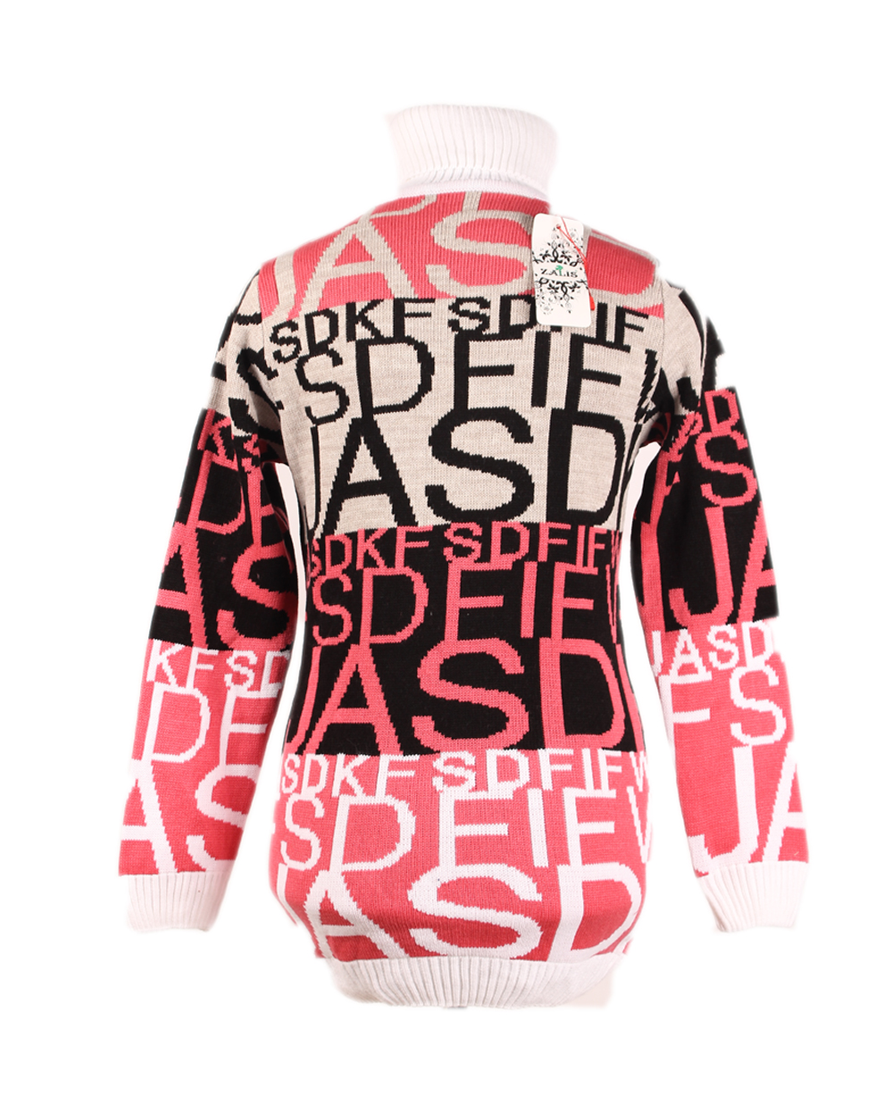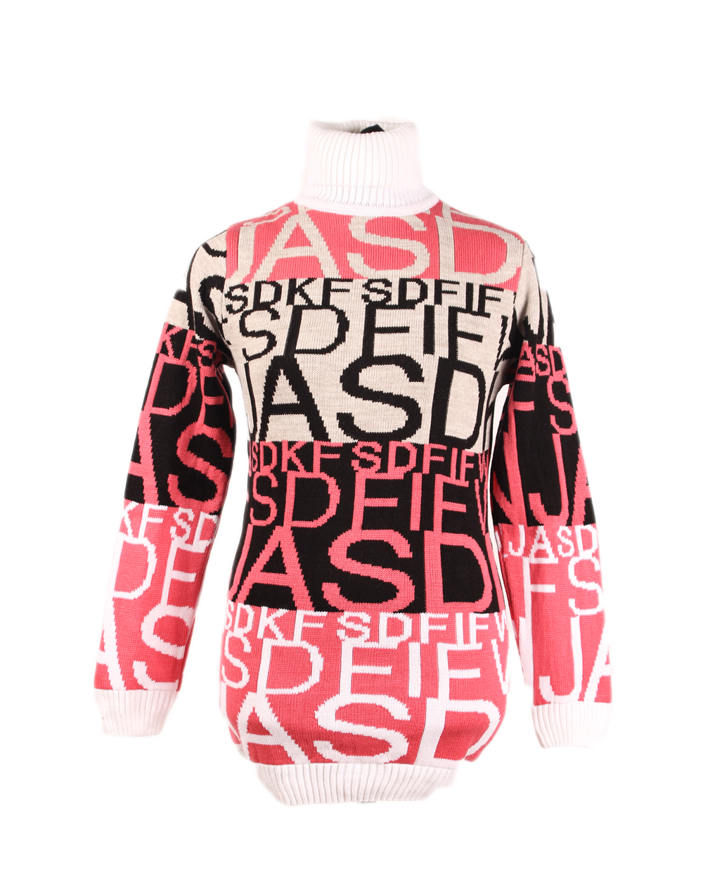Оригинальная женская шерстяная туника с воротом под горло и длинными рукавами. Уютная, яркая модель, прекрасное дополнение к любому гардеробу. Красивое сочитание нескольких цветов и большие вязаные буквы придают изделию свою изюминку.