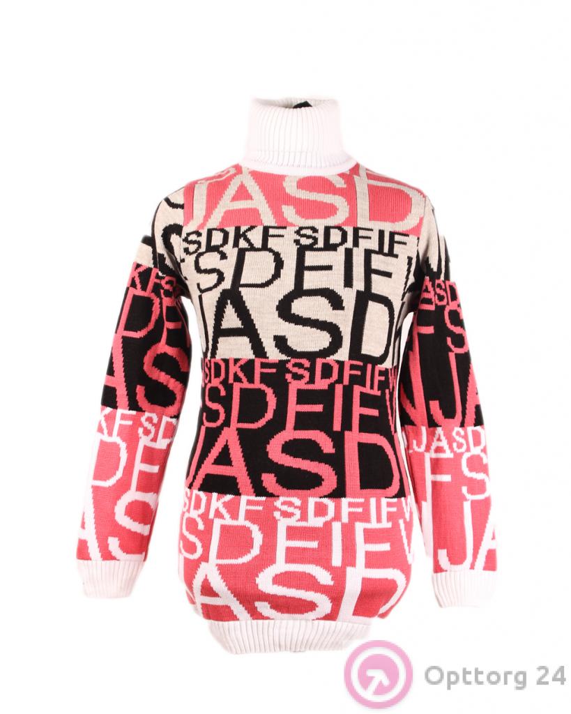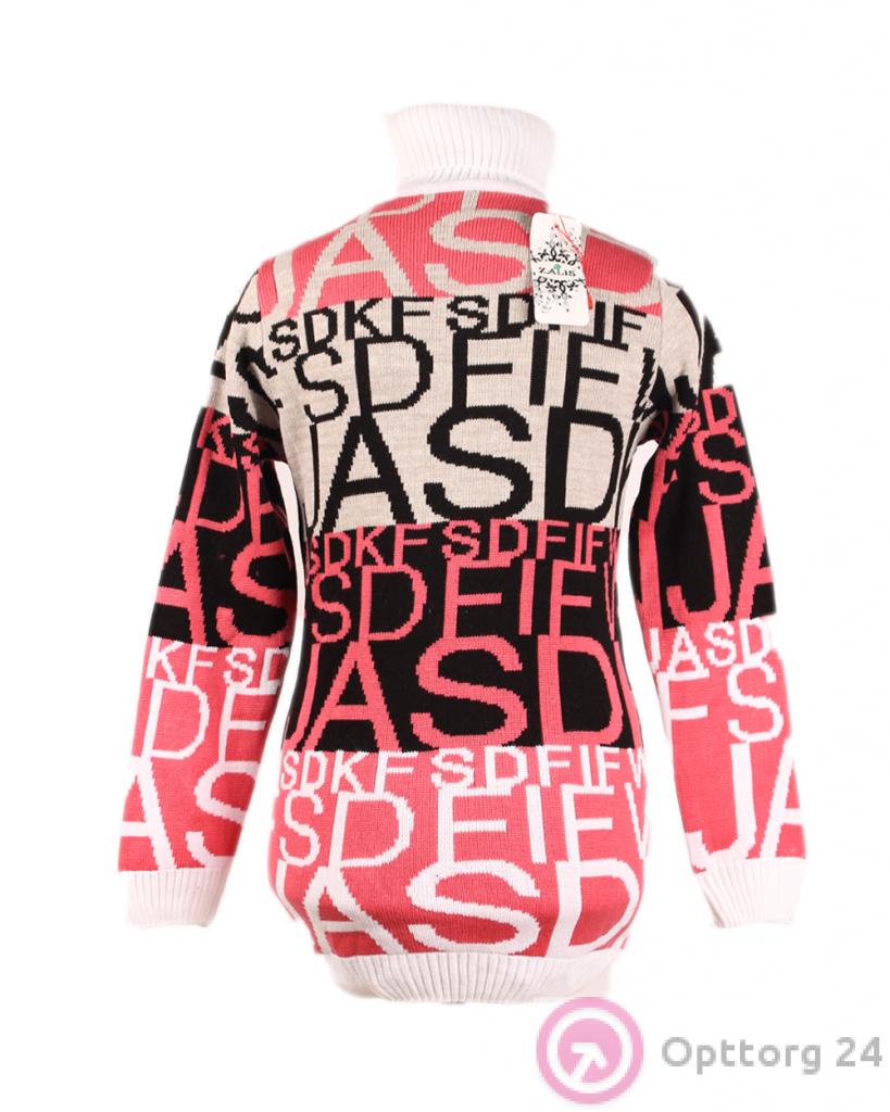 Туника женская бело-розовая в буквы, шерсть в составе оптом