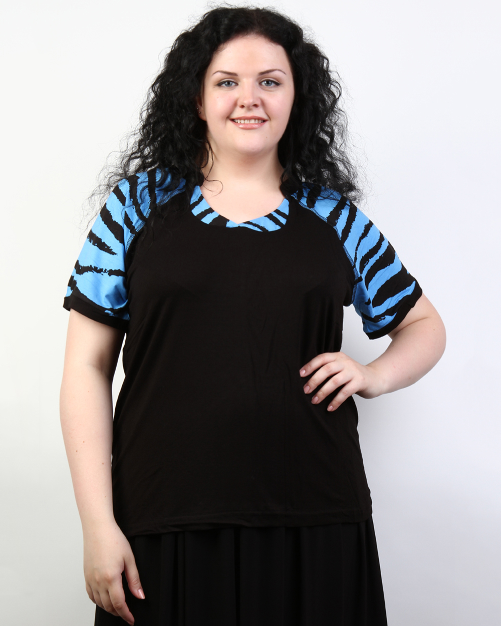 Туника женская черная с голубыми рукавами оптом