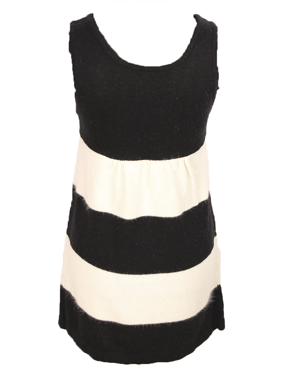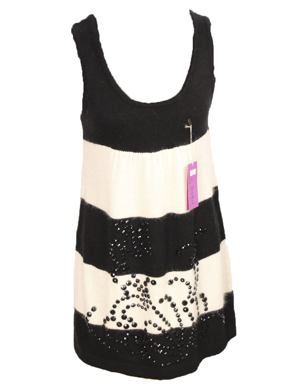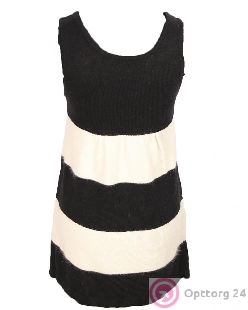Женская туника черно-белого цвета с апликацией на нижней части изделия