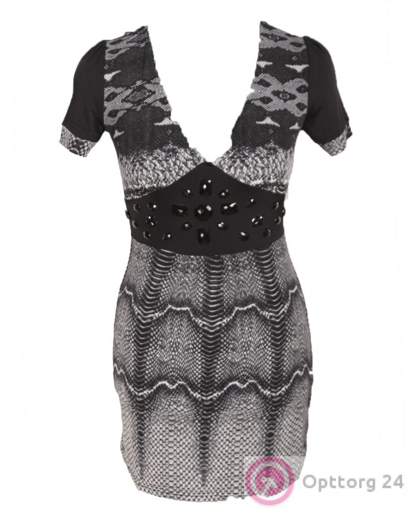Туника женская черно-серого цвета с глубоким декольте. оптом