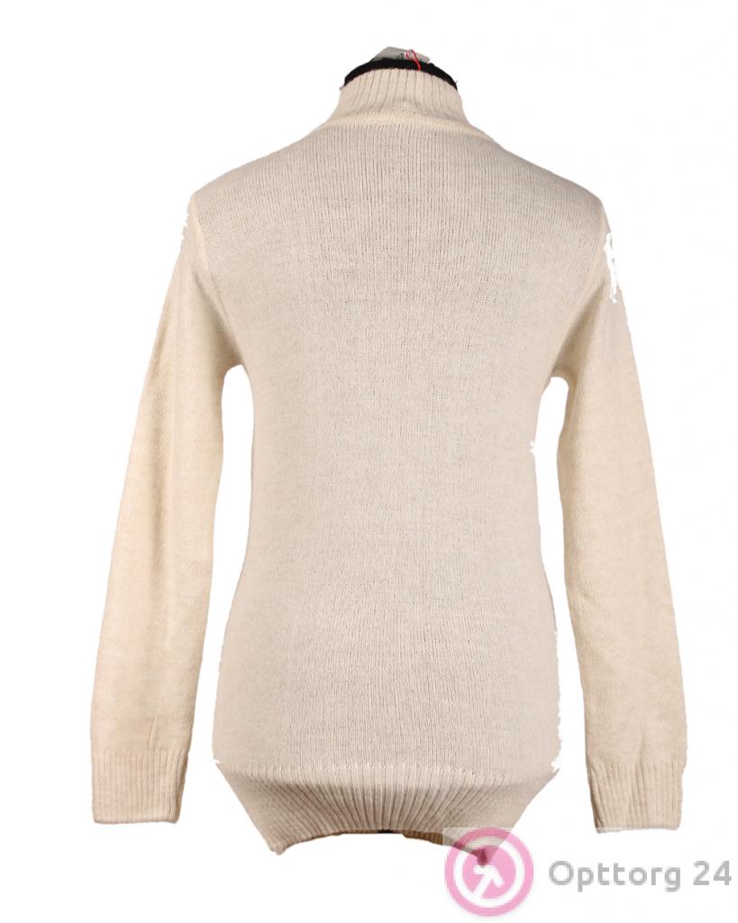 Туника женская шерстяная молочного цвета с геометрическим рисунком оптом