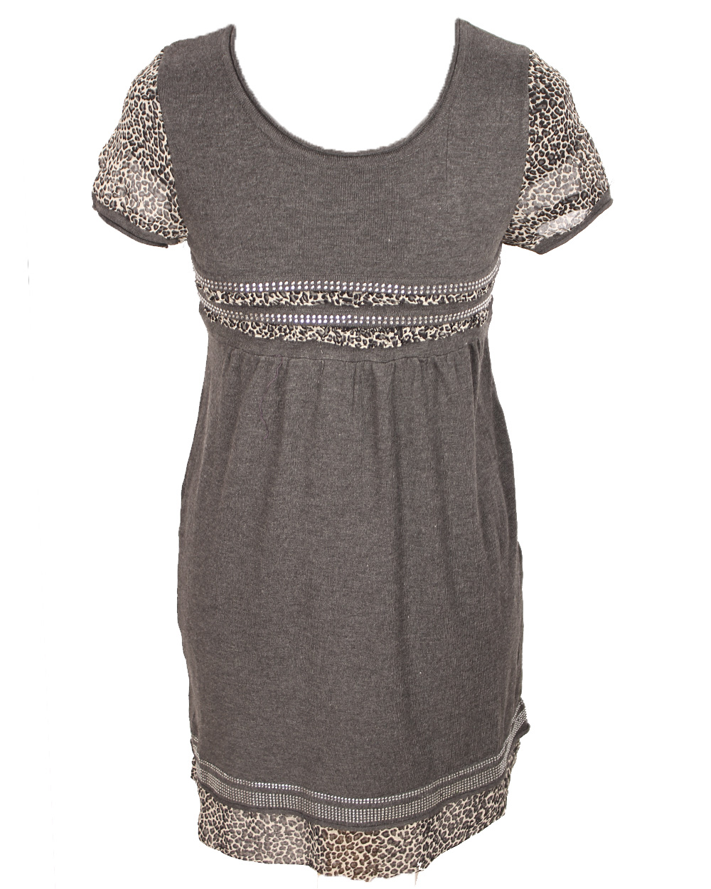 Женская туника серого цвета с коротким лёгким рукавом.